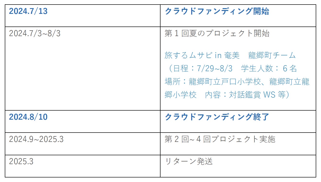 ※各プロジェクトは学生の募集状況や台風等で延期・中止になる可能性もあります。その場合も、次回以降の奄美プロジェクトの企画運営費に充てさせていただきます。