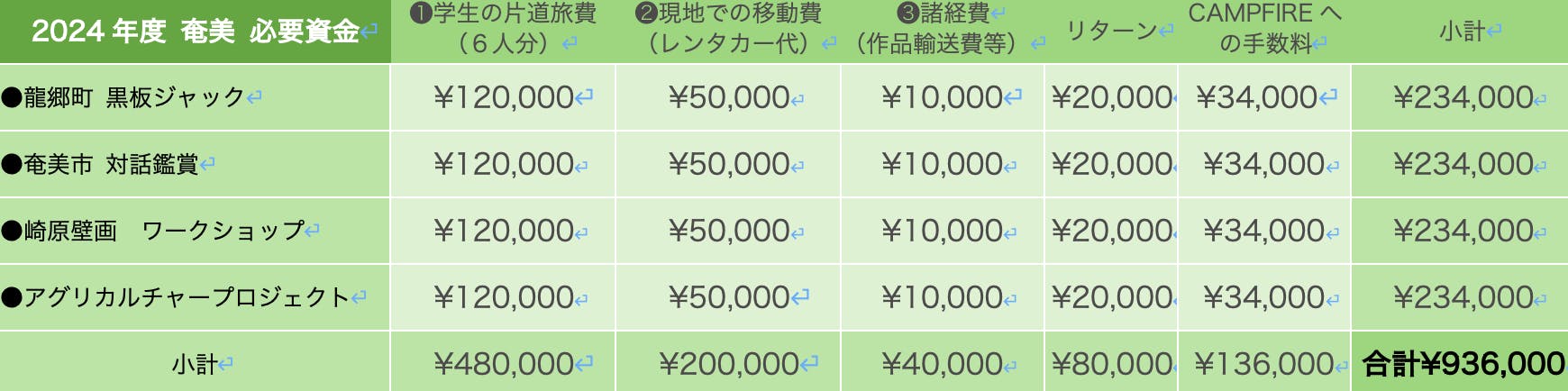 ※目標金額を超えた場合は、次回以降の奄美でのプロジェクトの企画運営費として繰り越します。