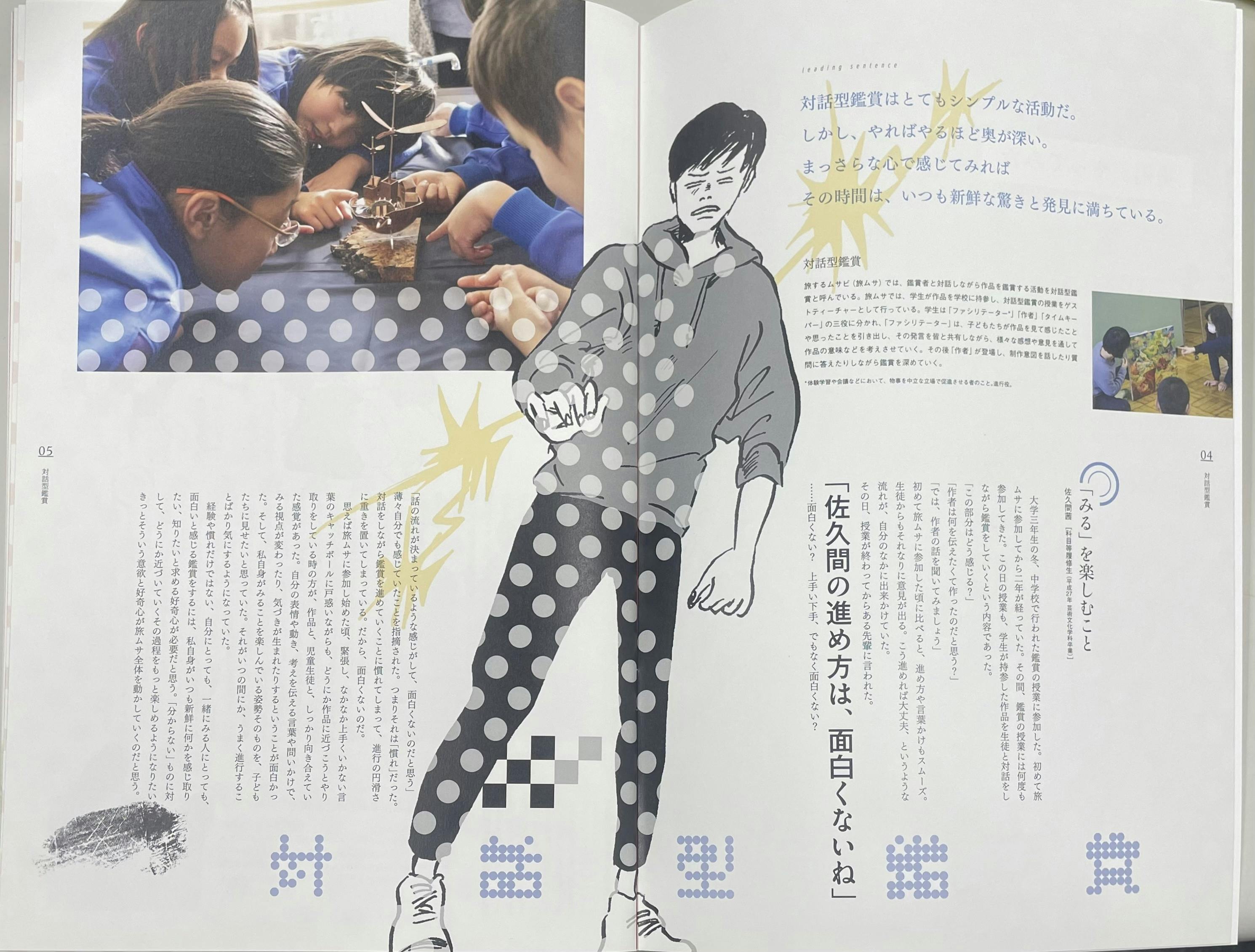 学生が制作した作品を持参し、子どもたちと対話して鑑賞する「対話鑑賞」を中心に、黒板に絵を描き子どもたちを驚かす「黒板ジャック」、空き教室を利用した「公開制作」や創造活動を行う「ワークショップ」など、既存の授業では実施しにくい美術教育活動を展開しています。美術の楽しさや多様性を子どもたちに伝えると共に、学生自身のコミュニケーション能力やファシリテーション能力の向上、そして先生方の研修や授業改善に大きな成果を出し、関係者全員が共に学び合うという、これからの美術教育の可能性を提案する取り組みです。