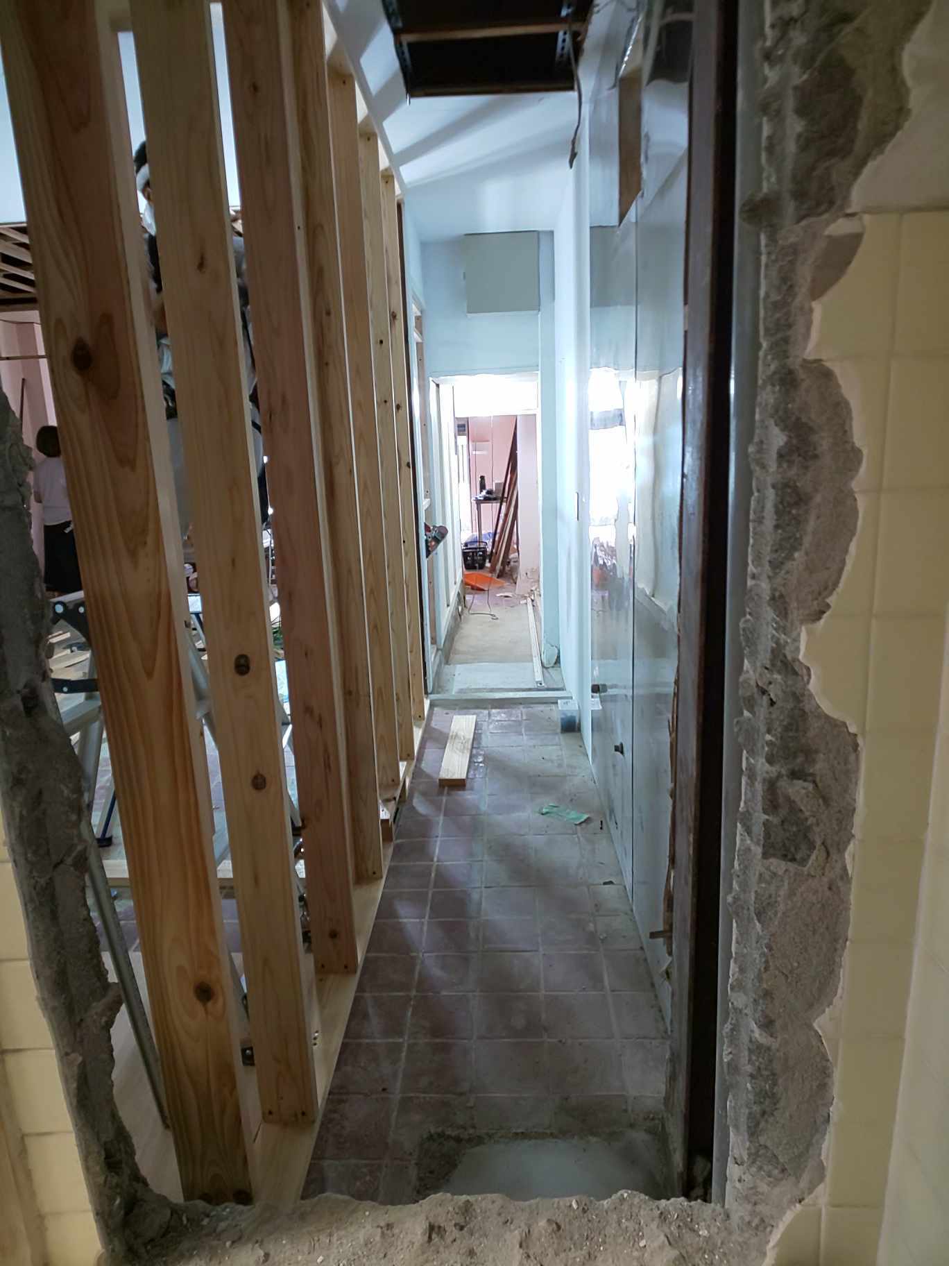 トイレから見た通路の様子です。着々と工事は進んでいます。