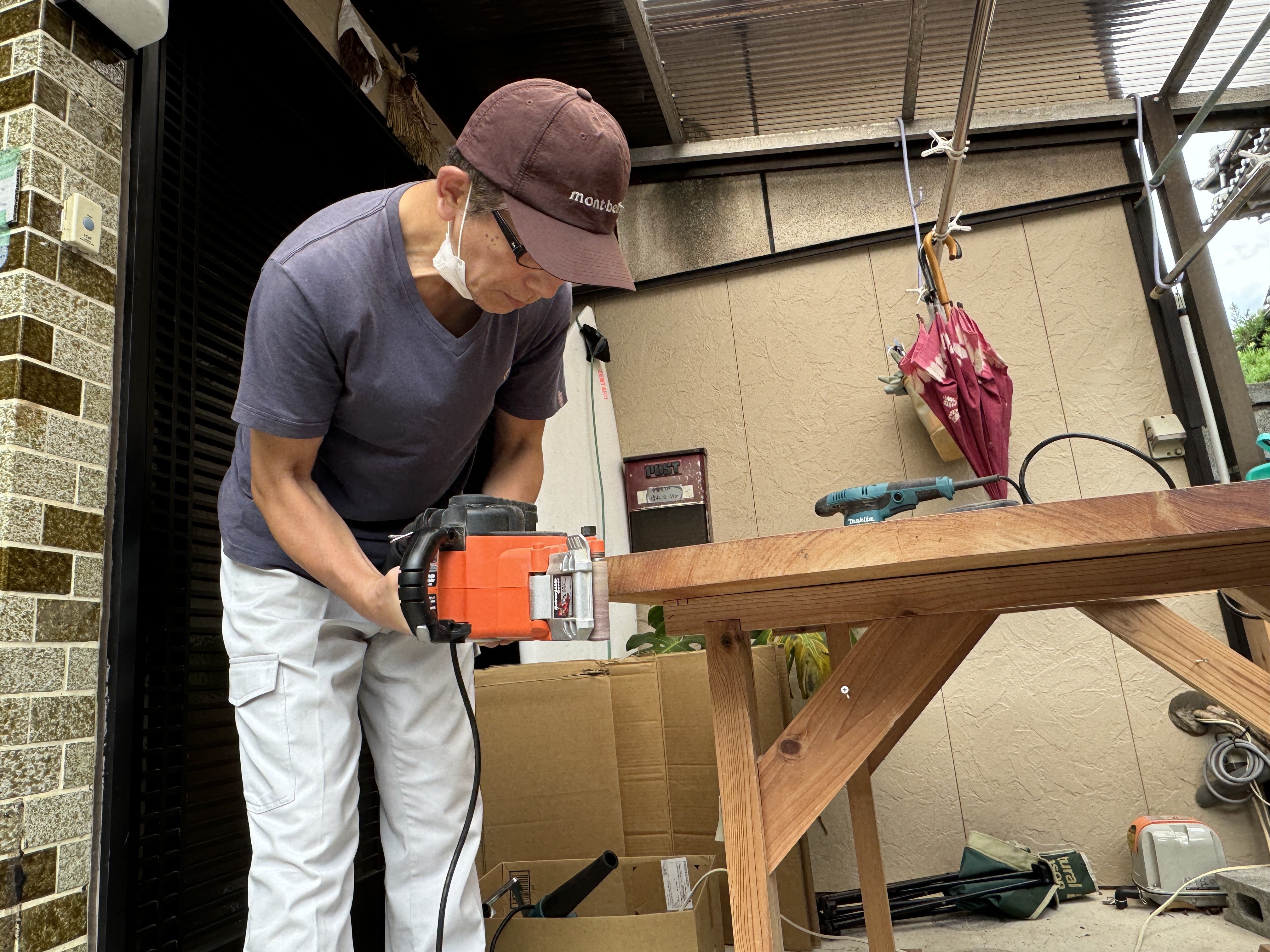 移転先店舗のテーブルは自前で製作をしています。