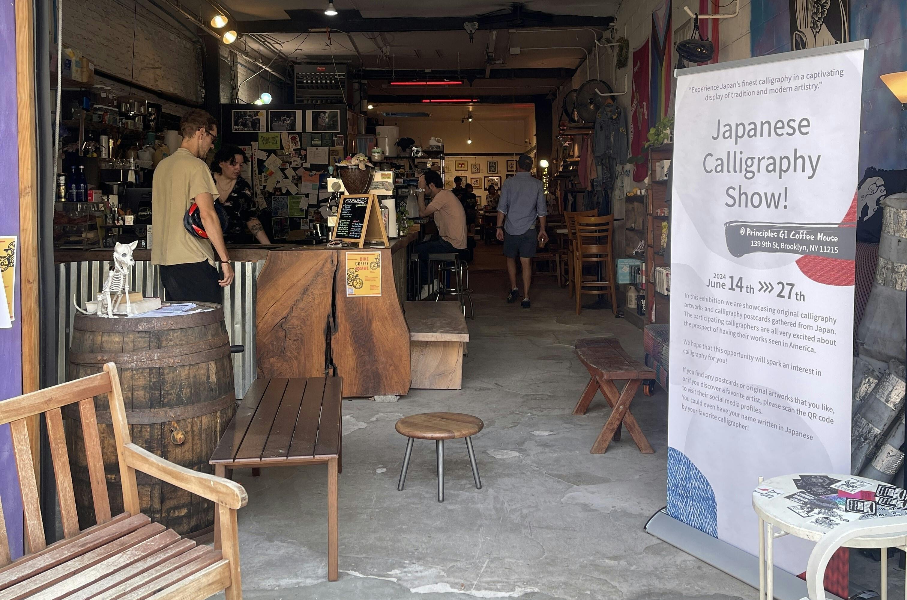 今回の書道展の展示場所です。11:00-14:00までは事務局の運営担当者も在廊しているとのことで、お店側にご迷惑を掛けなければ引き続きお店に留まっても良いとのお話でした。食事のこともありますし、できれば長居したいなぁ。そして現地のローカルなお客様と直に交流の機会が持てればなぁと考えております。