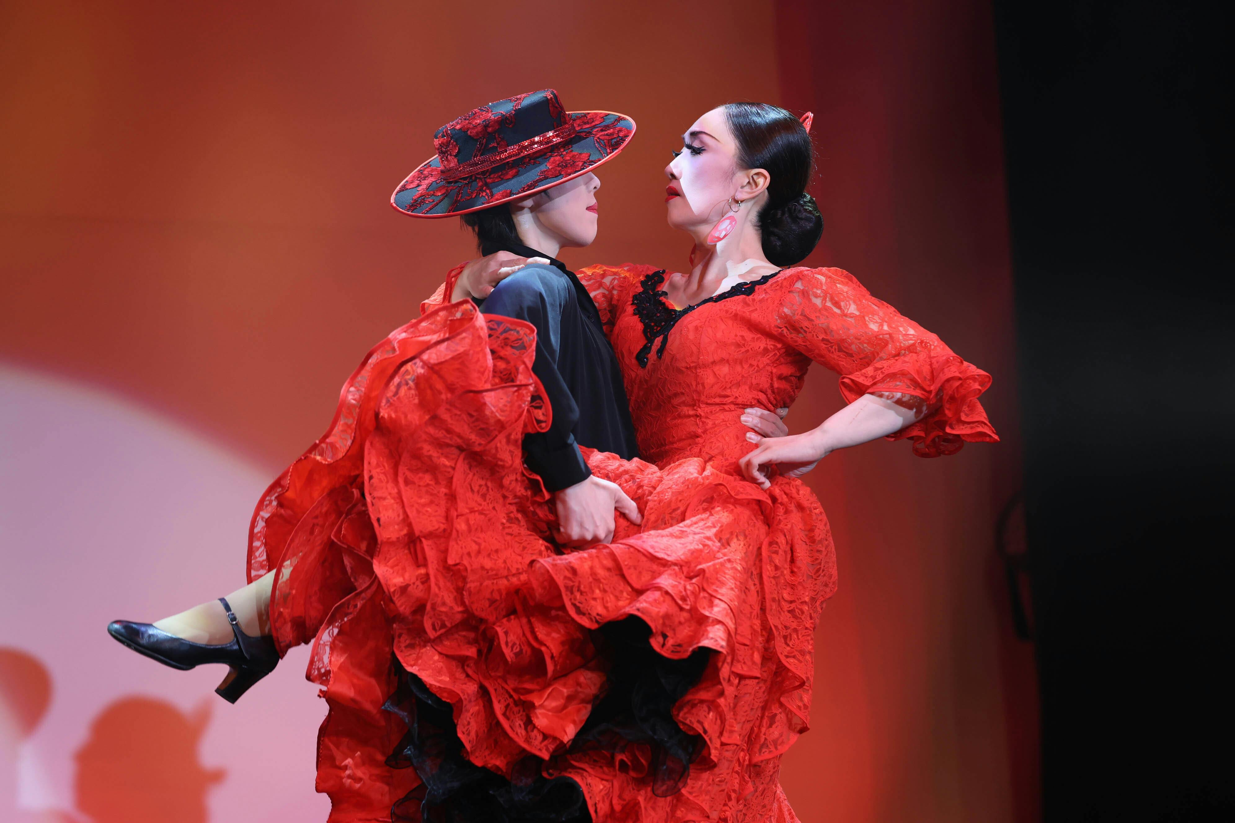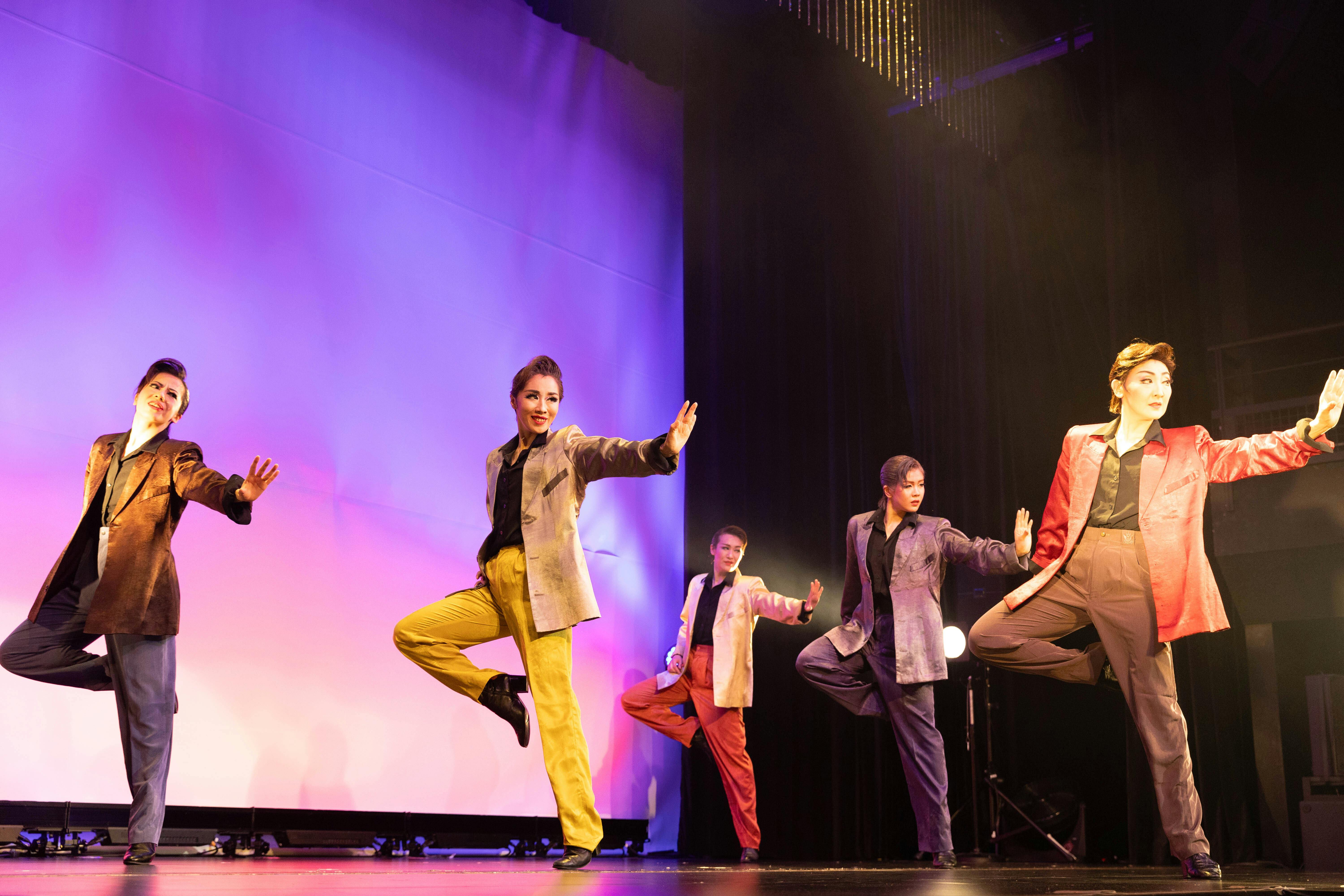 ダンスだけでなく、歌あり芝居あり演奏あり。ダンスもジャズだけでなく、男役と女役が、様々な国の踊りを踊ります。日舞からラインダンスまで多様な踊りが詰まっています。