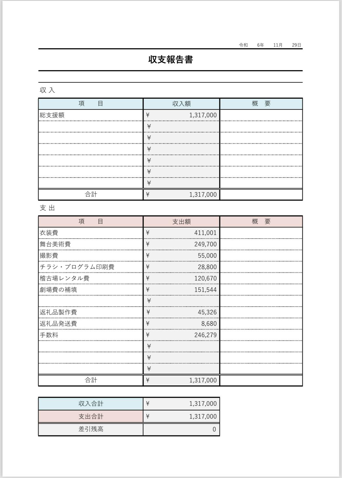 2024/11/29 17:58いつも応援ありがとうございます。この度のクラウドファンディングの収支をご報告致します。皆様にご支援いただきましたおかげで、『秋のおどり』無事に終演することができました。改めまして、皆様ありがとうございました。拙い運営ではございましたが、返礼品も、そして何より、『秋のおどり』のステージも、皆様にお楽しみいただけて光栄に思います。STAS・OG東京レビューは、東京レビューの100周年に向けて、ますます盛り上がって参ります!今後ともSTAS・OG東京レビューの応援をどうぞよろしくお願い致します。電飾和衣装 洋衣装洋衣装 もっと見る