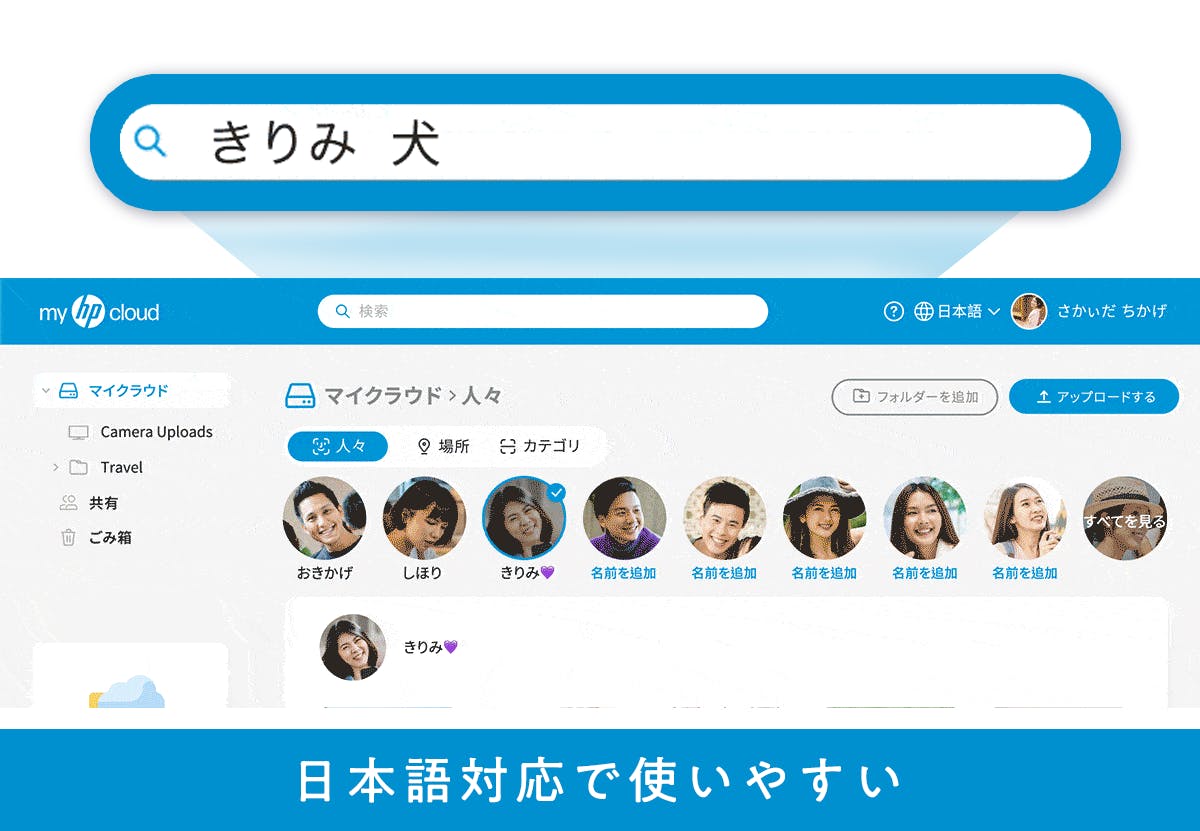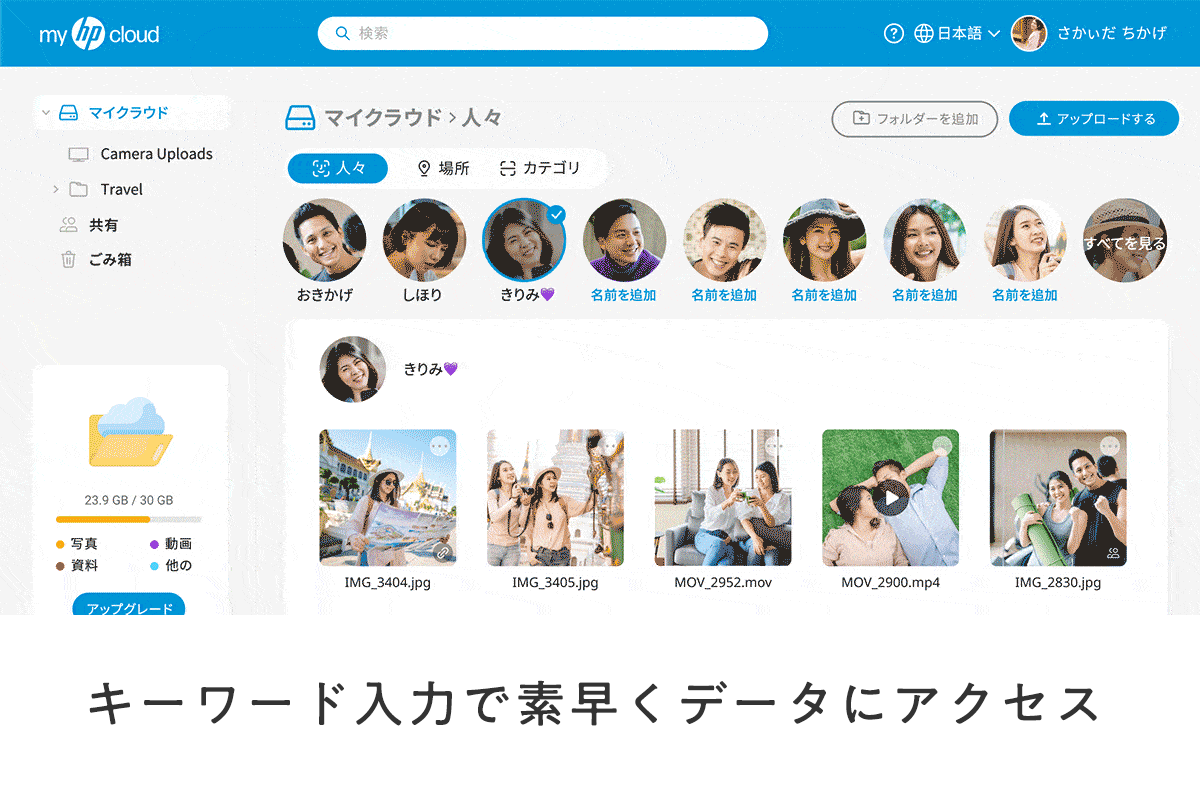 myHPcloudは、AIと機械学習アルゴリズムによって、保存されているファイルを自動で分析し、あなたが探しているデータを瞬時に予測します。