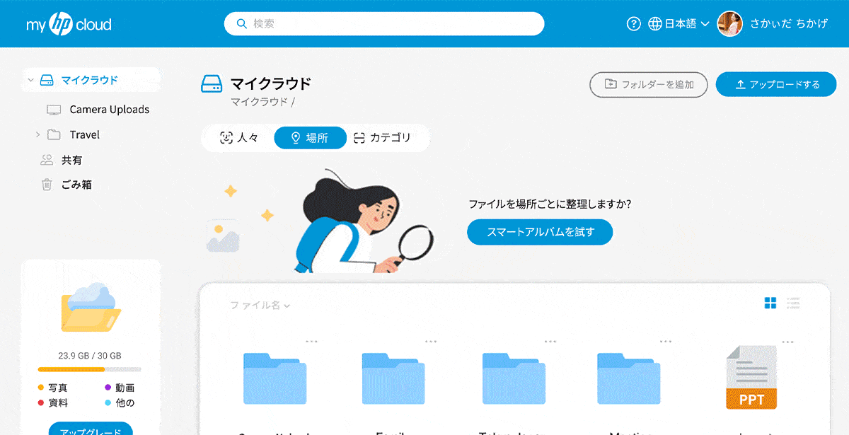 myHPcloudでは写真だけでなく、動画やワード、エクセルといった様々なデータも自動で整理されます。