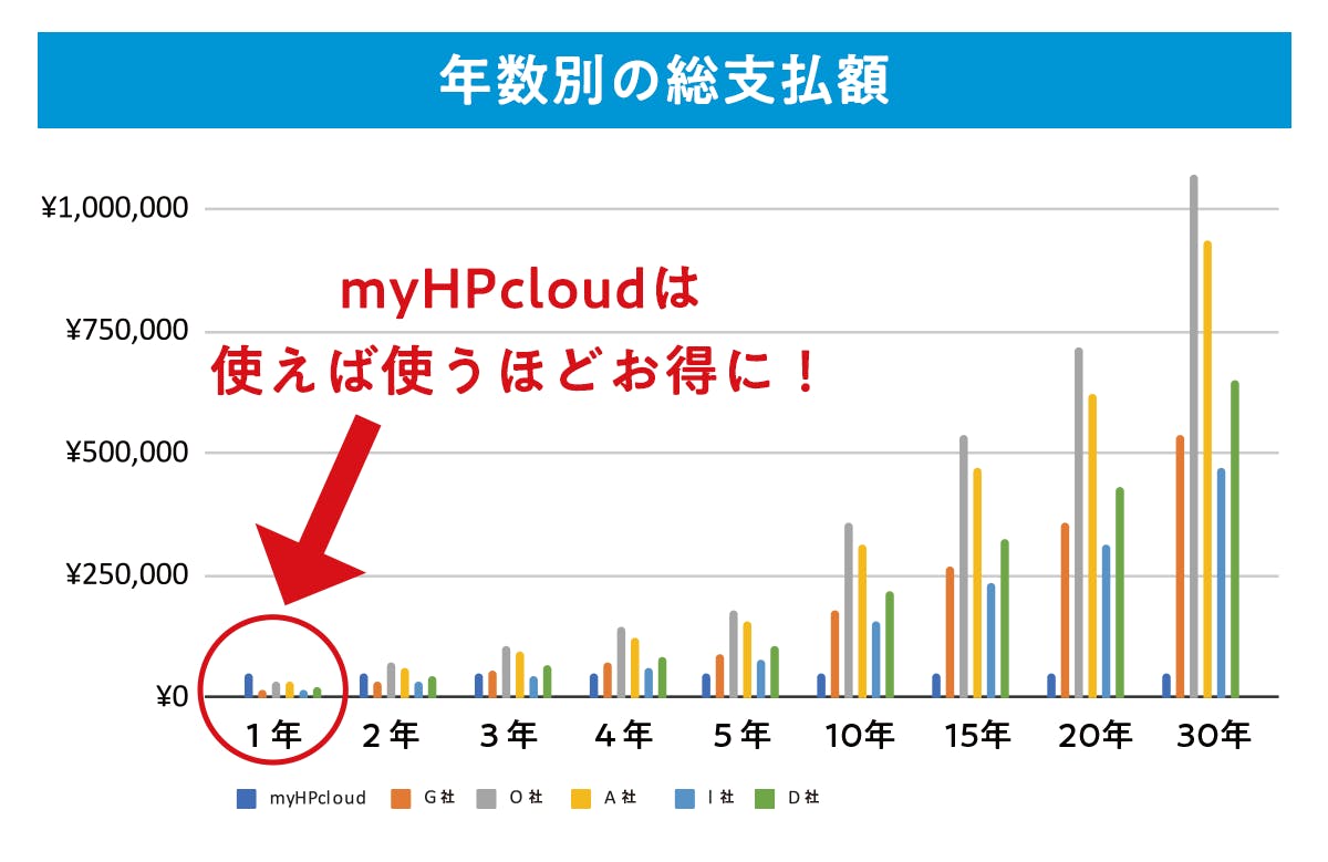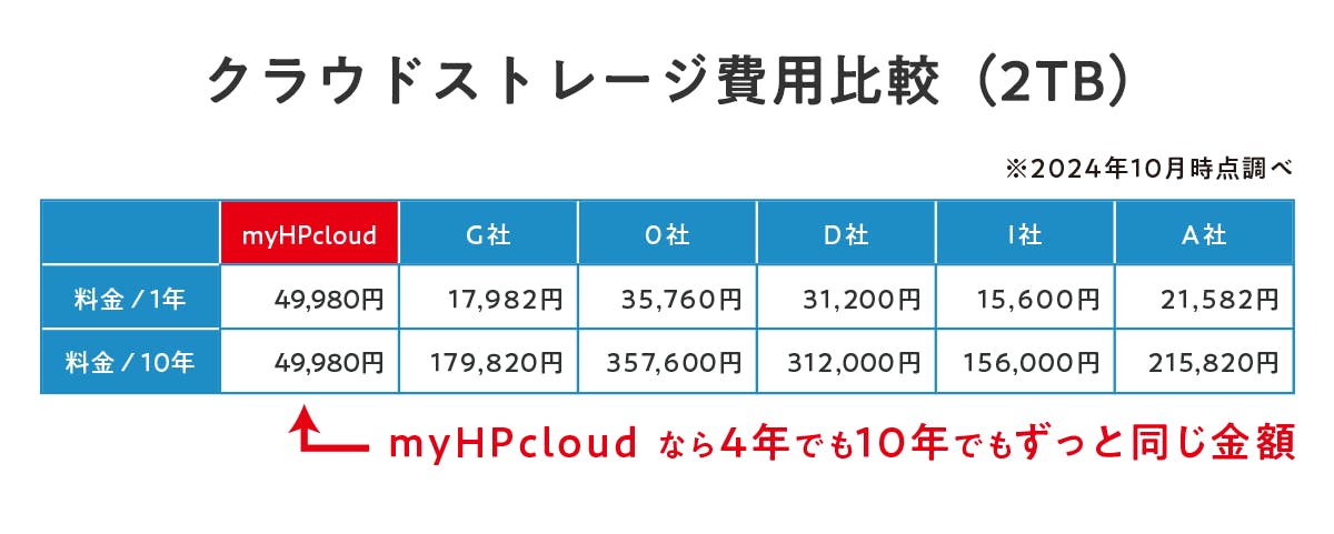 myHPcloudの最大の特徴は、生涯にわたるクラウドストレージの費用を圧倒的に抑えられる点です。