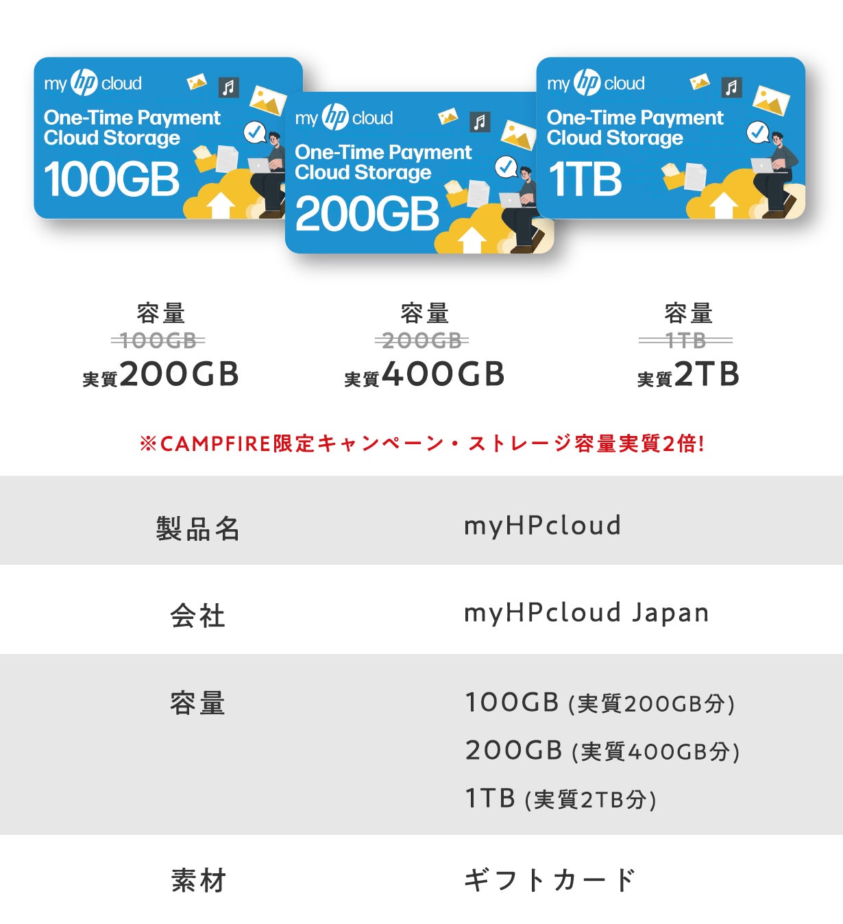 CAMPFIREでのクラウドファンディングを記念して、ストレージ容量実質倍増キャンペーンを実施します。