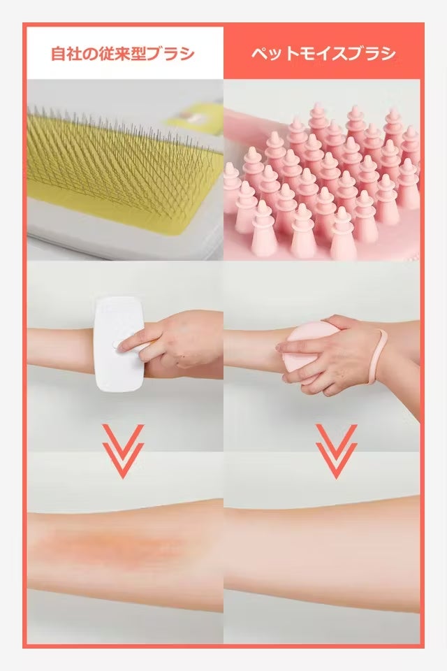 ペットモイスブラシは、まるで優しく撫でられているようで気持ちがいい!わんちゃん、ねこちゃんもブラッシングがきっと好きになる!!