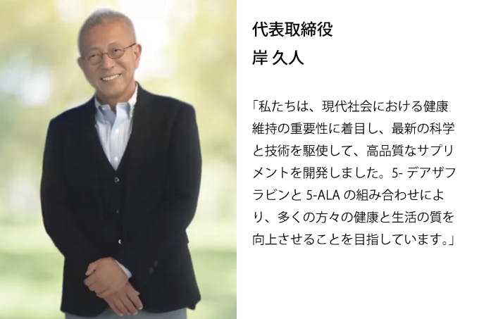 高純度の5-デアザフラビンを配合したサプリメントを提供し、多くの方々の健康維持と生活の質向上を目指します。​さらに、無料セミナーを開催し、エイジングケア※の方法を共有することで、健康意識の向上を目指すコミュニティを作りたいです。※年齢に応じたケア