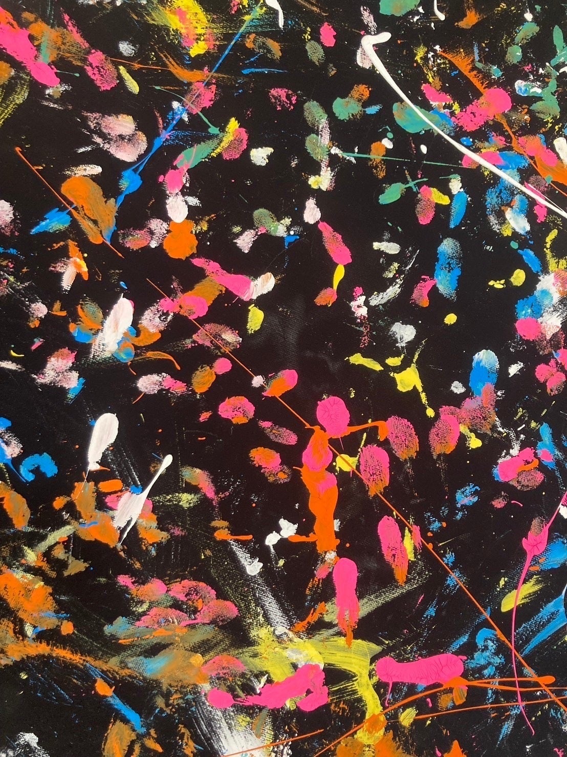 アール・ブリュットとは、「生の芸術」を意味するフランス語です。その解釈は、人によって様々ですが「正規の美術教育を受けていない人による芸術」、「既存の美術潮流に影響されない表現」などと説明されています。現在の日本では、その中の一部で「障害児、者」の表現としてアール・ブリュットが推進されています。一般的に自閉症スペクトラム、知的障害児が筆およびペンを使って作りだす作品が多く見られますが、当事業所の子どもは、障害が重度であるため、視線入力機器を使用した抽象画、身体の可動できる範囲を支援者が見極めて、ひとりひとりの障害特性に応じた新しいアール・ブリュットに励んでいます。