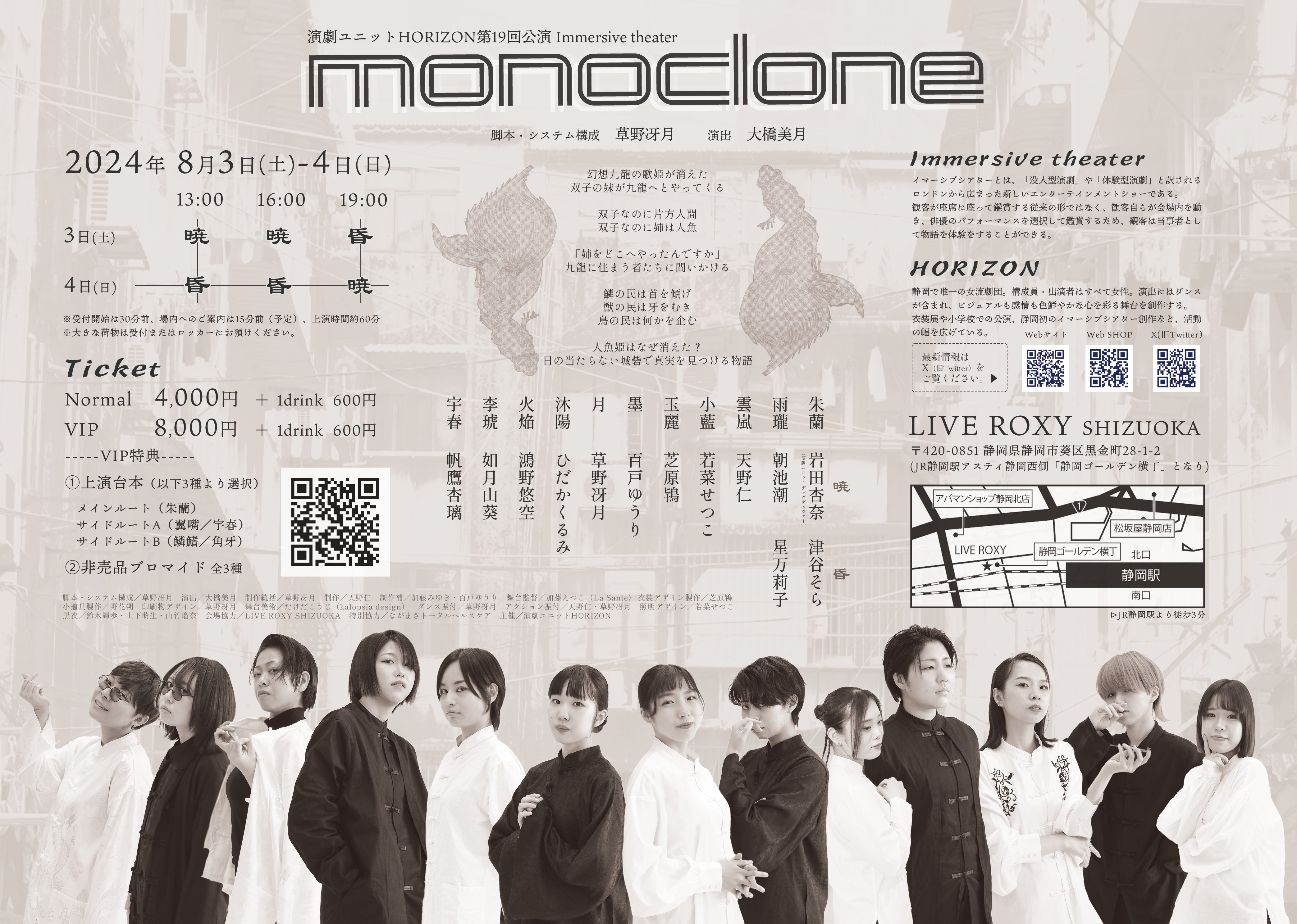 演劇ユニットHORIZON第19回公演『monoclone』の制作支援プロジェクトです。