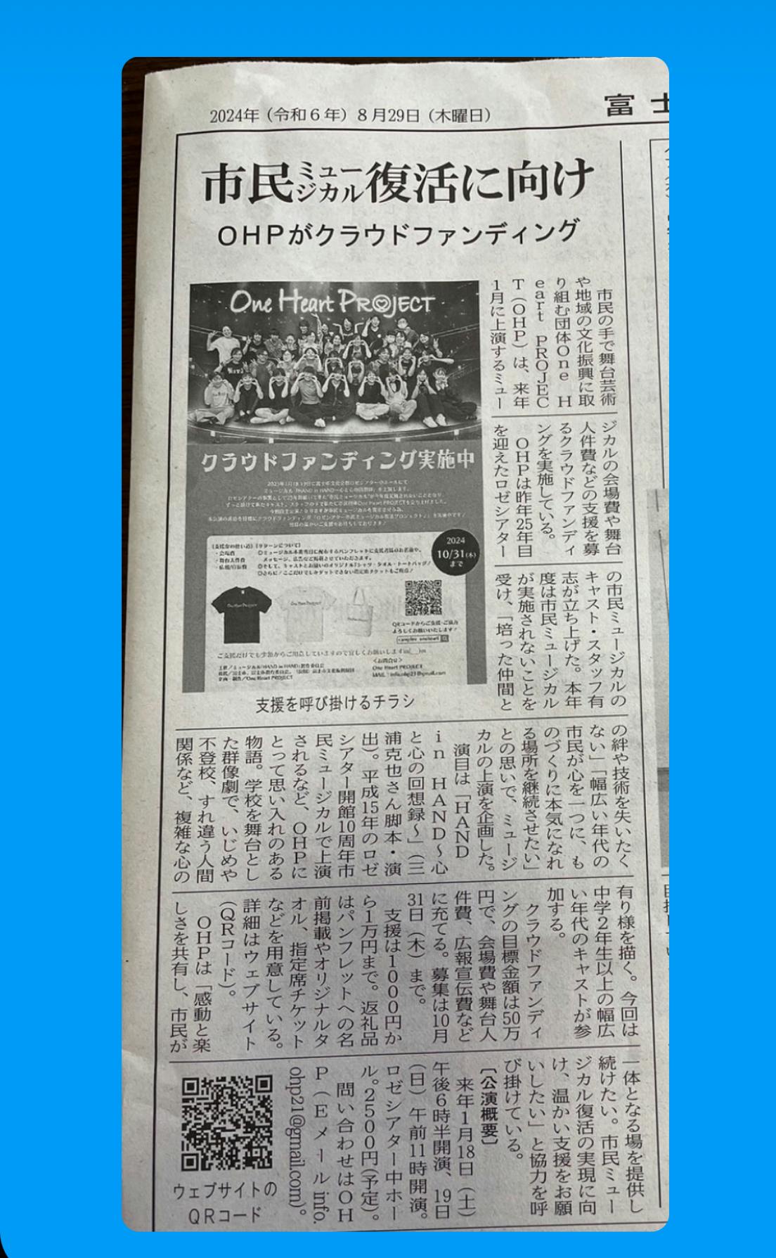 幅広い年代の方々に市民ミュージカルの事、クラウドファンディングの事など知っていただく機会になりとても嬉しく思っています^_^