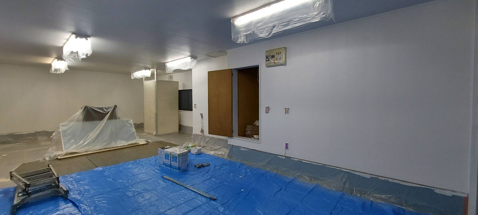 現在は壁や天井の塗装作業が進んでおり、これから床材の施工や設備の取り付けなど、少しずつ「子どもたちが安心して過ごせる空間」へと形を変えていきます。