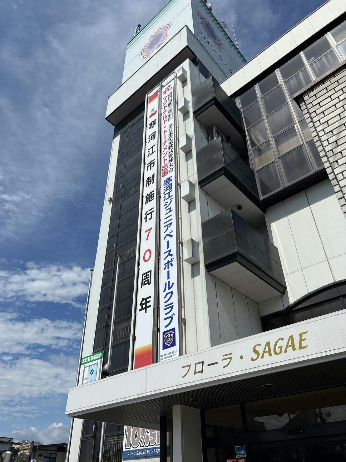 この度、寒河江ジュニアベースボールクラブの全国大会出場を祝し、寒河江市のランドマークと言えるフローラ寒河江に記念懸垂幕を設置いただきました!!