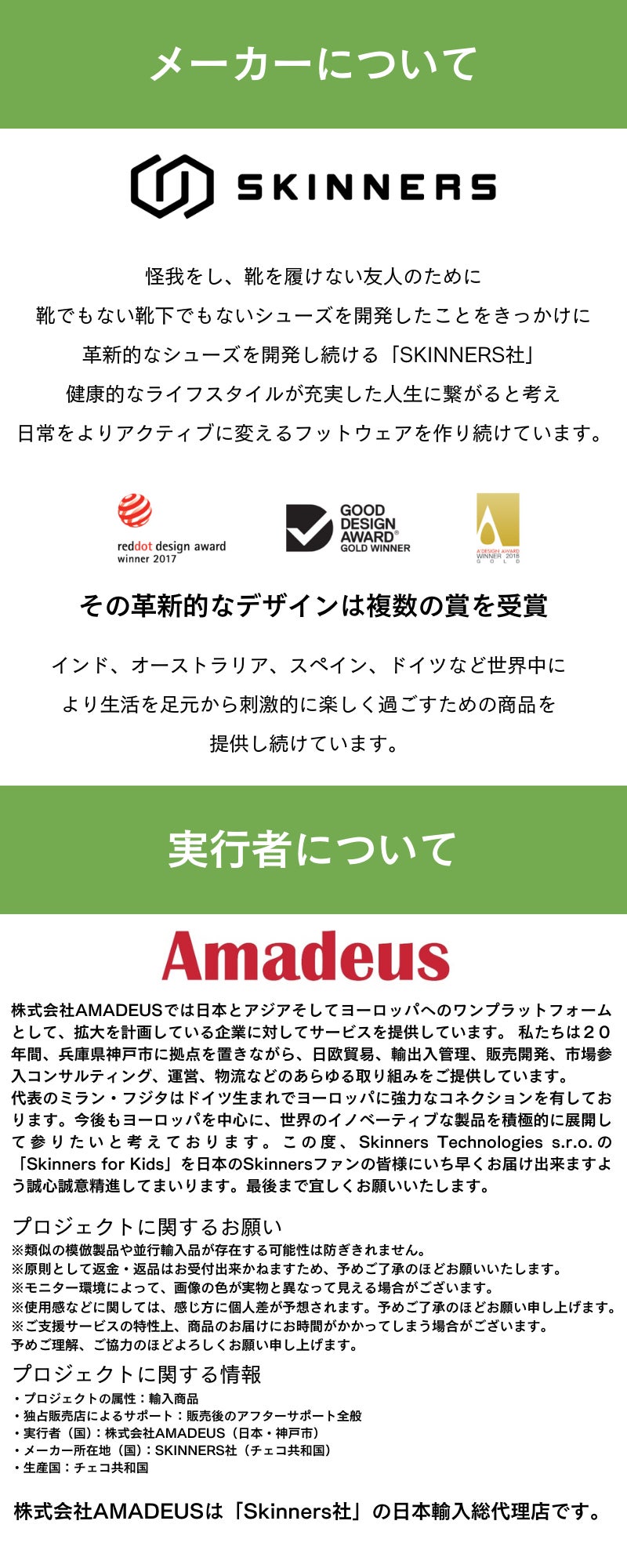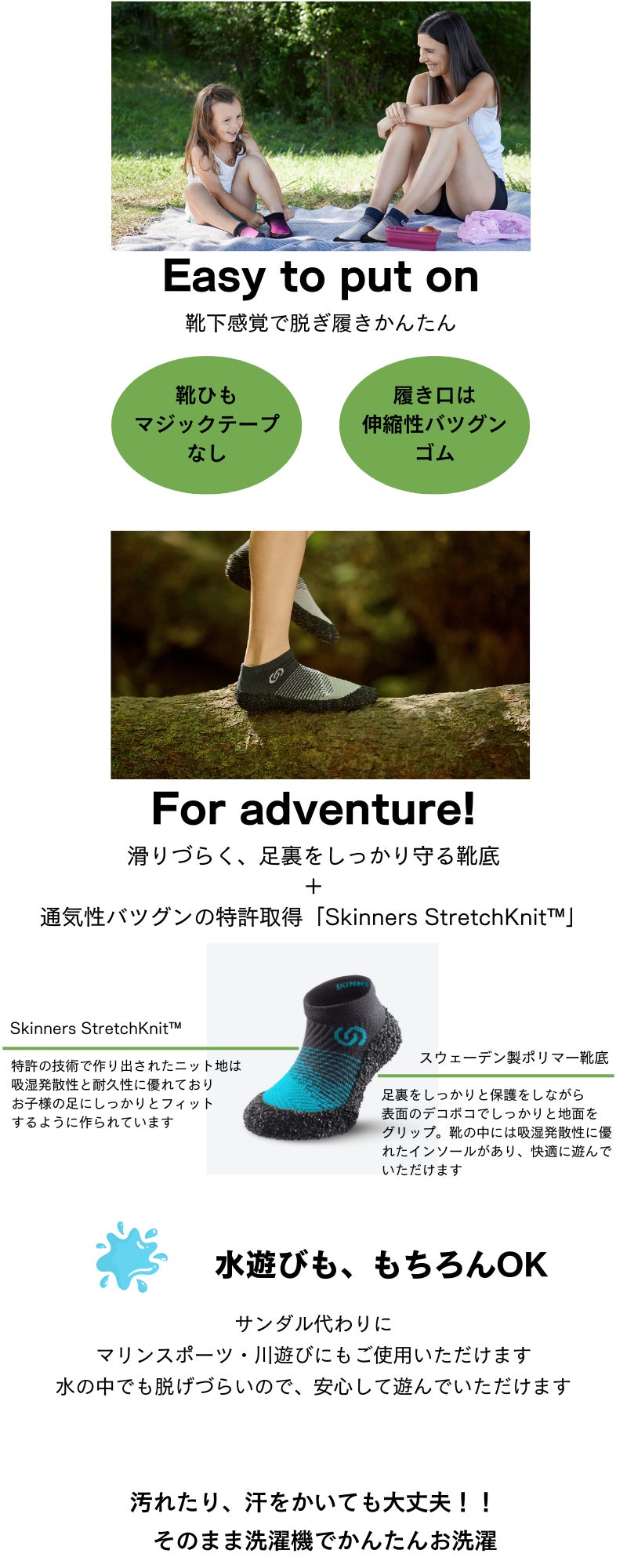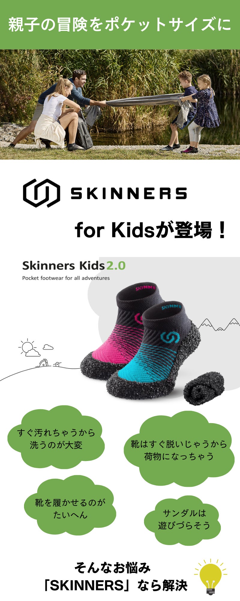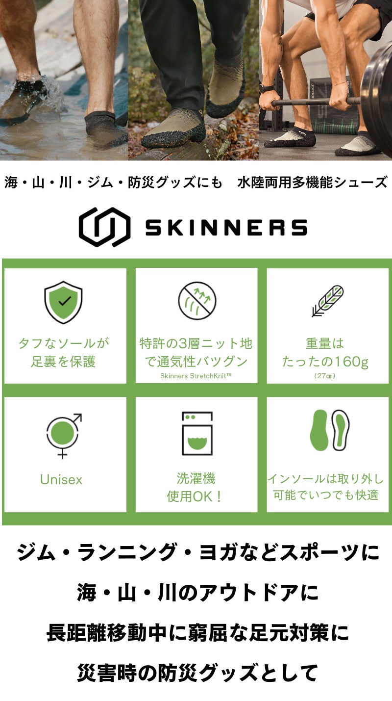2024/10/02 18:44Skinnersにご関心を持ってくださっている皆様へこの度は、Skinnersにご関心を持ってくださり誠にありがとうございます。Skinnersはチェコ発の水陸両用、海・山・川・ジム・防災用にもこれ一足の多機能シューズです。今回のプロジェクトでは「キッズサイズ」を日本初上陸CAMPFIREで先行発売致しました。この機会に親子の冒険をもっと身軽にポケットサイズへしてみませんか。【製品の特長】・軽量&コンパクト!くるっと丸めて持ち運びカンタン・頑丈かつ柔軟なスウェーデン製ポリマーの靴底が足を保護・通気性・伸縮性バツグン。イタリア製ファイバーを使用した 特許の三層ニット地「Skinners StretchKnit(TM)」・洗濯機使用OK!汚れても、汗をかいても「靴下感覚」でかんたんお洗濯【campfire限定のお得な早割】最大30%引きの先行者割引特典をご用意しお待ちしております。ご支援はこちらから引き続きよろしくお願いいたします。Skinnersチーム一同 もっと見る