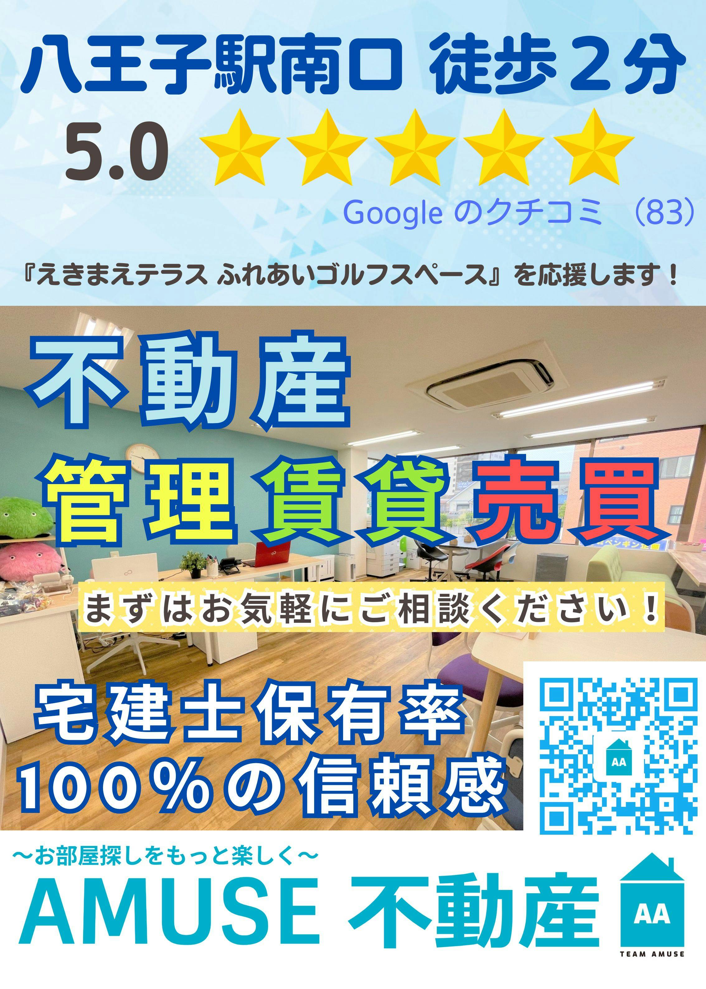 7月27日に開催が決定しております『ふれあいゴルフスペース』には、八王子駅南口の不動産会社「アミューズ不動産」様にご協賛をいただいております。