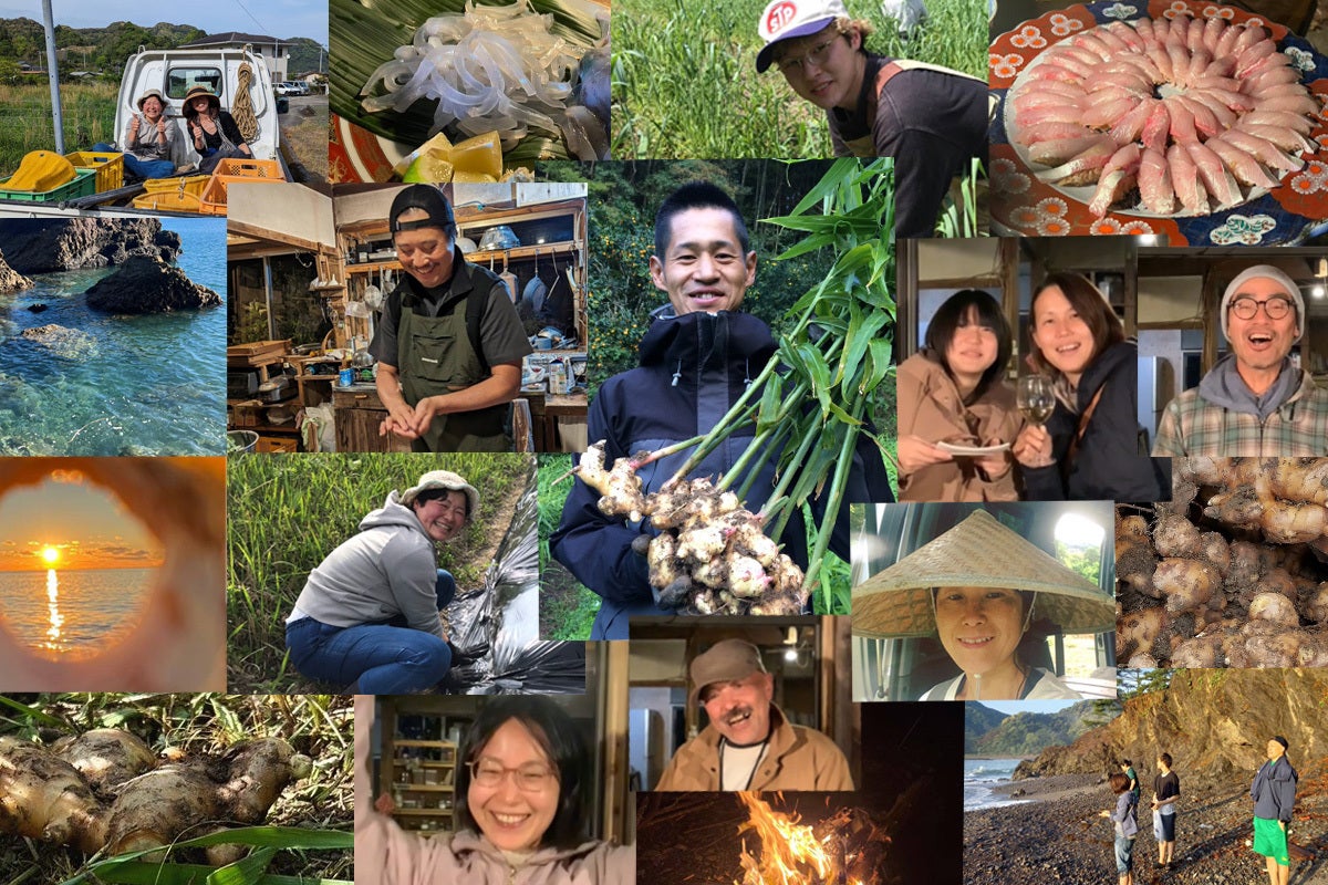私が生姜栽培を始めてから早くも12年の月日が経ちました。その間、沢山の人たちと出会い、本当に色とりどりの美しい風景を見させてもらいました。この数年は、県外からも多くの仲間が生姜の収穫や植え付けに来てくれるようになり、新たな場作りにも取り掛かっています。生姜と共に生きる毎日は、本当に豊かで素晴らしくエネルギッシュな日々です。時に凹むこともあります。悩みもあるし、なかなか成果に繋がらない事だらけですが、自然の中にいると勝手に湧きあがる喜びがあるんですよね。それはきっと、絶え間なく循環し続ける自然の息吹、命の力だと思います。私にパワーをくれる大地!歴史的多くの偉人を輩出したこの高知県が育むテロワールを私は皆さんに届けたいです!笑顔あふれる未来を生姜で醸して生きたいです!!