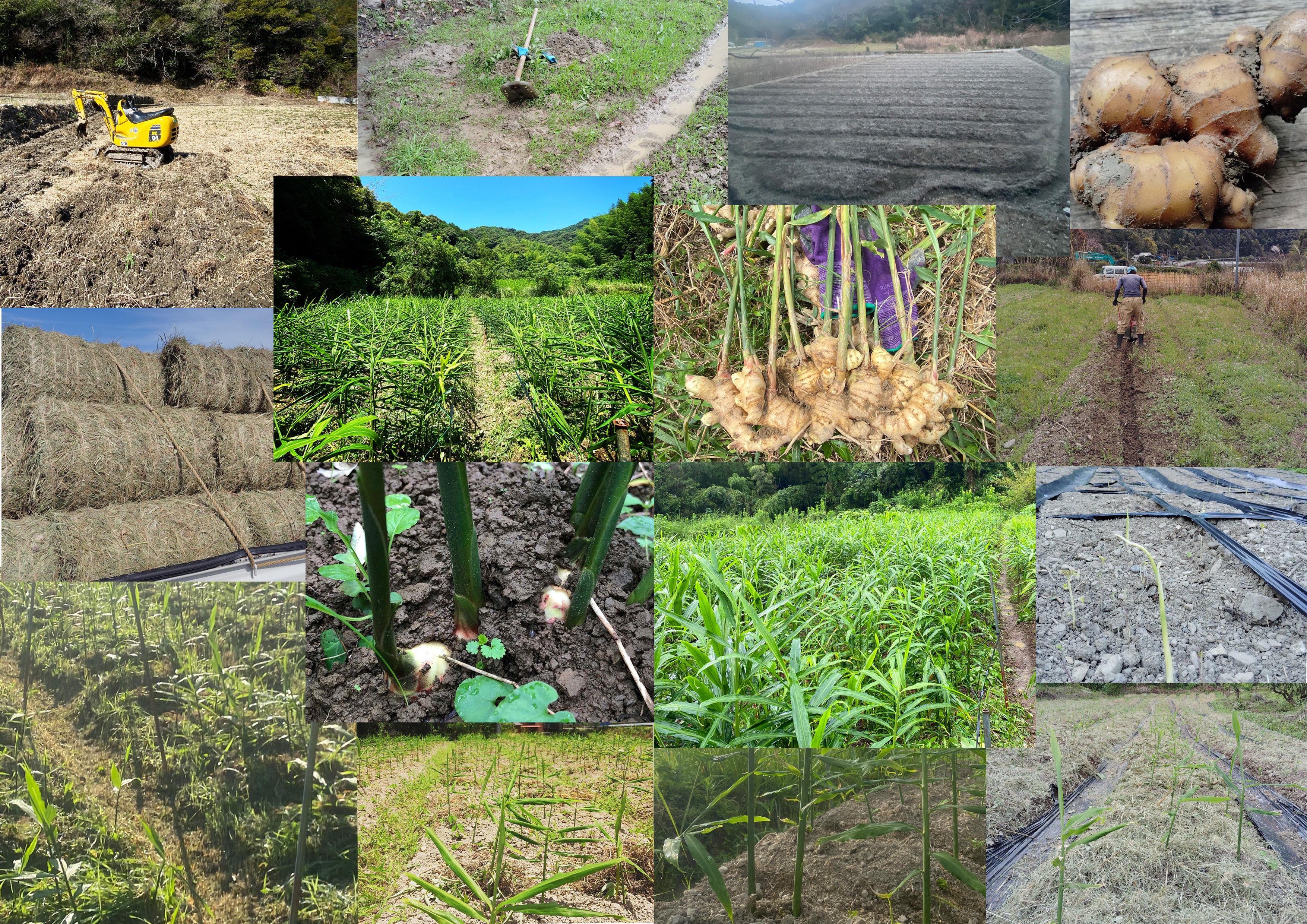 本来、畑はそれ単体では機能しません。周辺の山や川、最終海に流れる水路があって初めて美味しい作物が育つ肥沃な畑になります。私はいつも生姜の畑で作業をしている時、不図目の前の山を眺めながら、この資源を活用できていない自分に憤りを覚えます。この国の豊かさは山にあるのに、山の世話をしないことで沢山の無駄金が使われています。それは持続可能な循環社会を自らが手放していることに他なりません。本当は外から肥料を買ってこなくても、もともと日本には豊かな資源があるのです。なぜこれに気づかないのか?なぜ外ばかり見ているのか?結果、日本人は日本の豊かさを手放しているのです。だから、私は目の前にある資源を生かした循環型の農業で生姜をつくり、ここから、自然も人も、全ての滞りを解消して循環を促すことで新しい価値と文化を創造したいと考えています。でもね、本当はただただ、生姜が愛おしくて、美しくて、この先もずっとこの豊かで美しい日本の自然の中で生姜を作り続けたいだけなんです(涙)