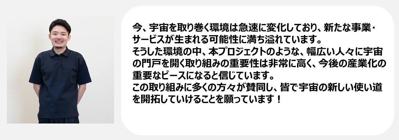 Space BD㈱の芳澤様から、プロジェクトに対する素敵な応援メッセージをいただきました!!
