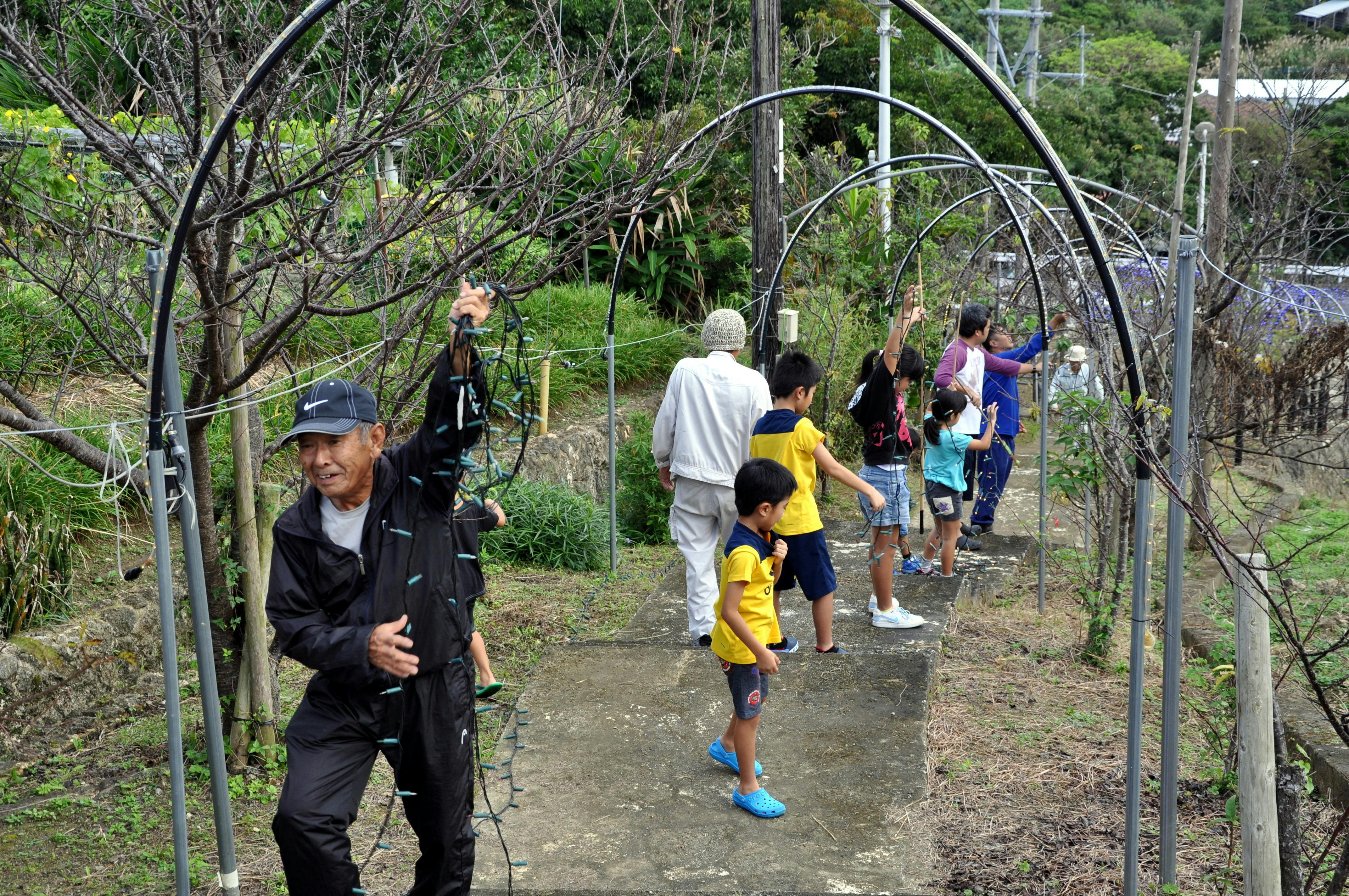 小さな集落の自治会が懸命に頑張っていることに新聞、テレビでも報道されるようになりだんだんと広く周知されていきました。「2007年に第1回沖縄電力イルミネーション大賞」、「2016年南城市上がり太陽プラン」に採択されました。毎年12月の第2日曜日から1カ月余にわたるイルミネーションは恒例となり市内外から多くの家族が訪れ幻想的な光のシャワー、トンネルの光景には年末の風物詩として大変喜ばれています。今後とも地域の活力ある事業として自治会を初め近隣市町村の憩いの場として末永く継続していきたいと願っております。