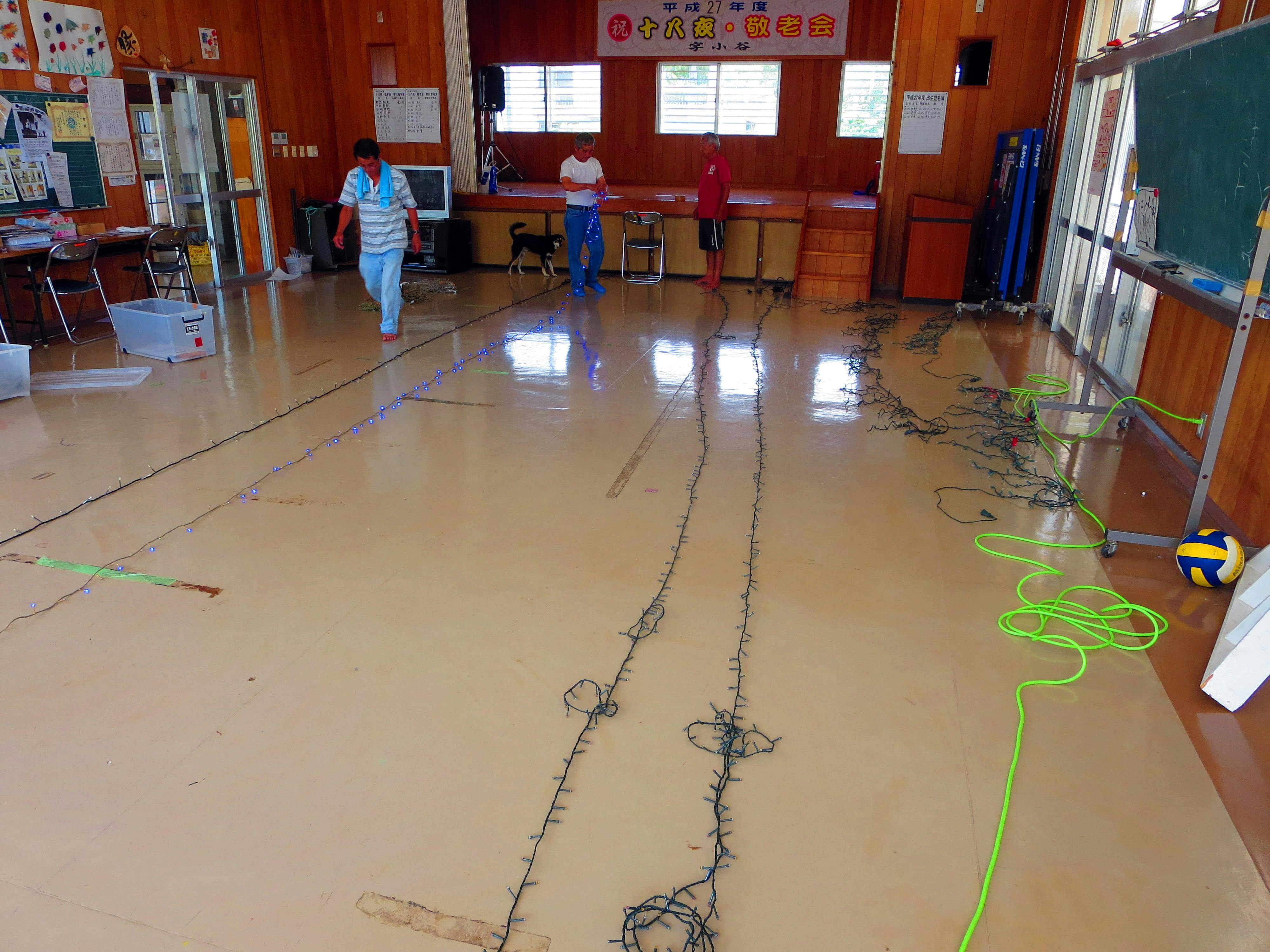 10月。既存のイルミネーション電飾灯のチェック。新たな電飾灯や器材の購入。
