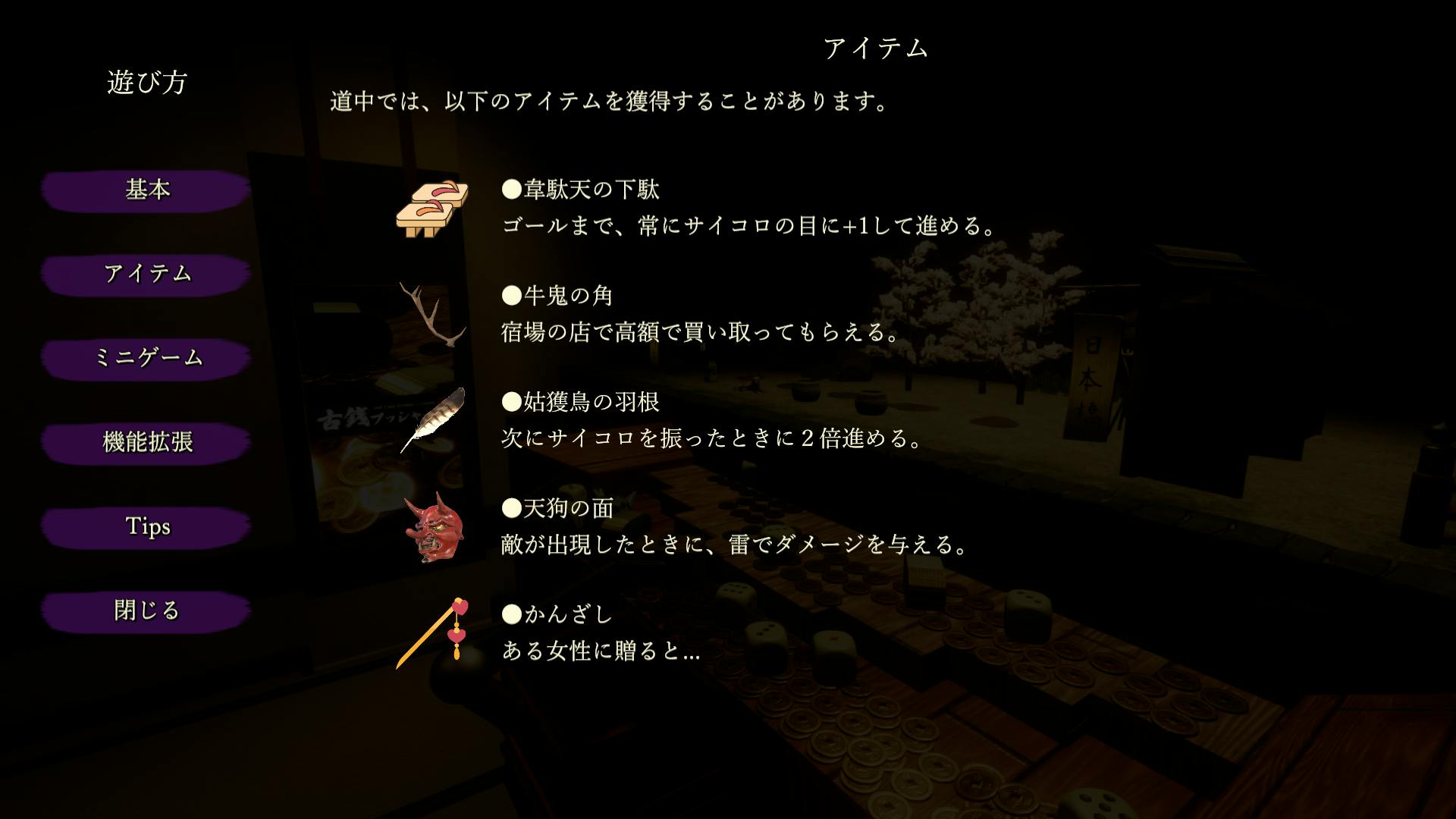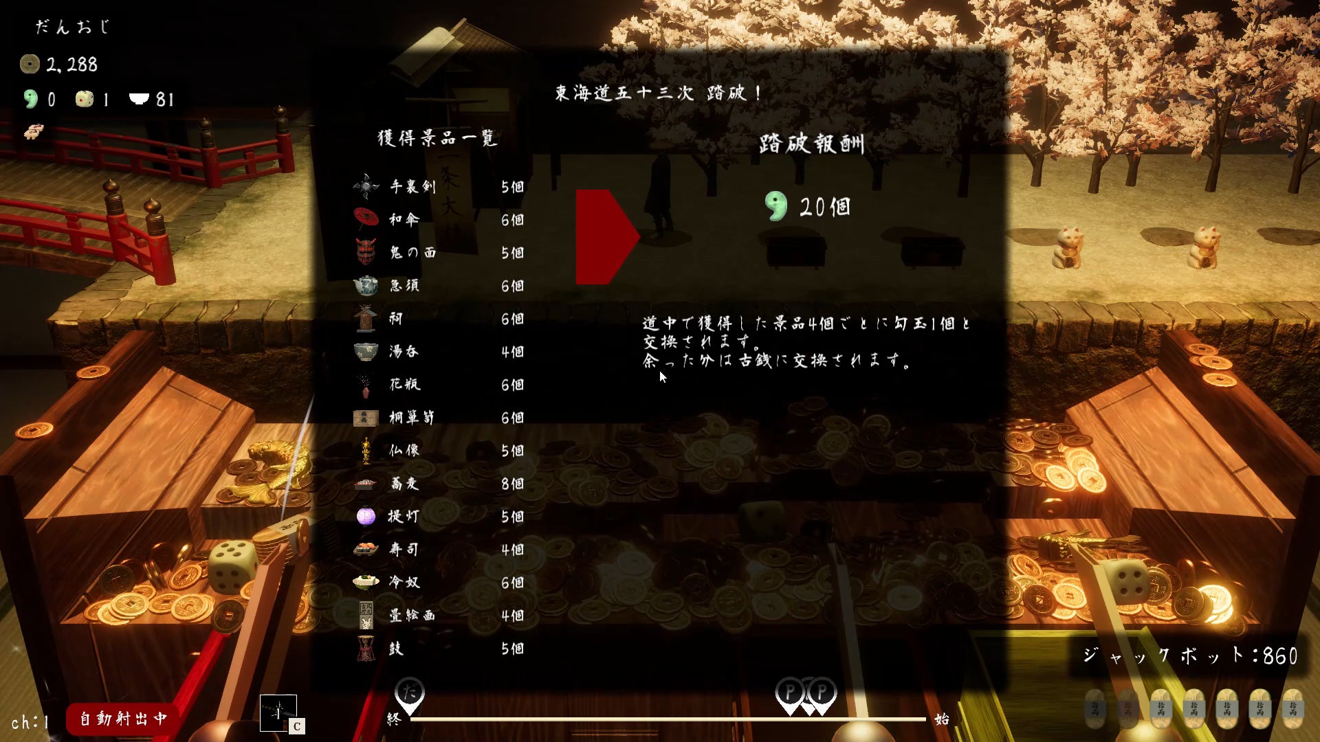 獲得できる景品には道中に特別な効果が発生する景品と、東海道五十三次を踏破した時に精算できる景品の2種類があります。特別な効果が発生する景品はゲームプレイを助けてくれるものばかりで、チャンスがあれば是非獲得しましょう!