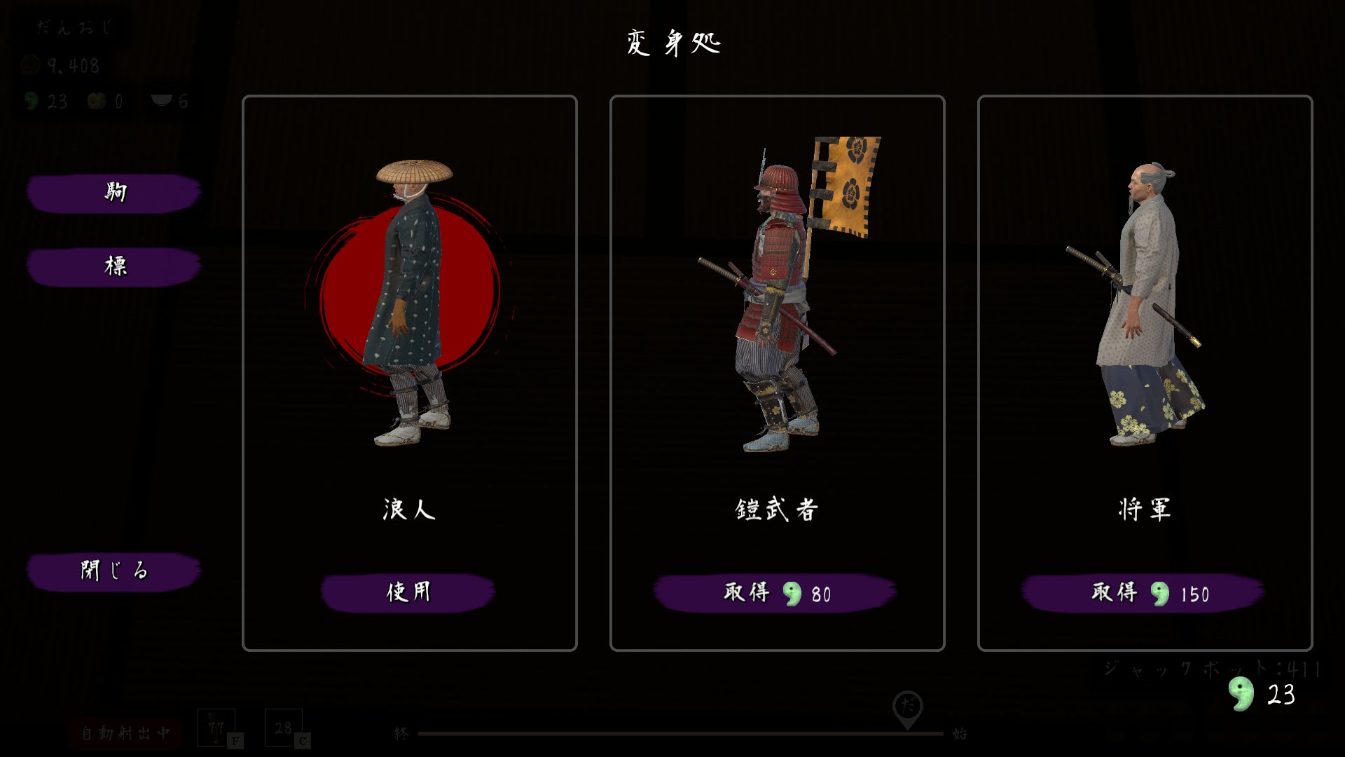 また、勾玉を使って東海道五十三次を巡る自キャラクターを変身処で変更することもできます。