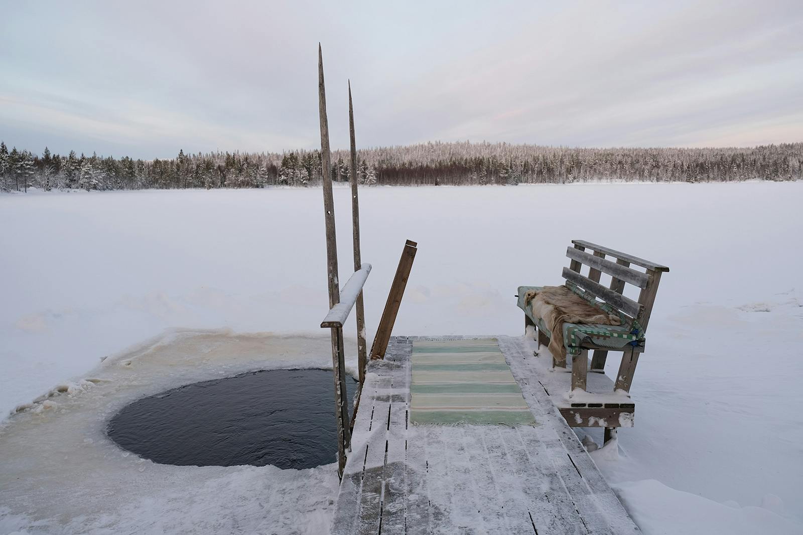 凍結した湖にサウナ後にダイブしたあとの「ととのい」