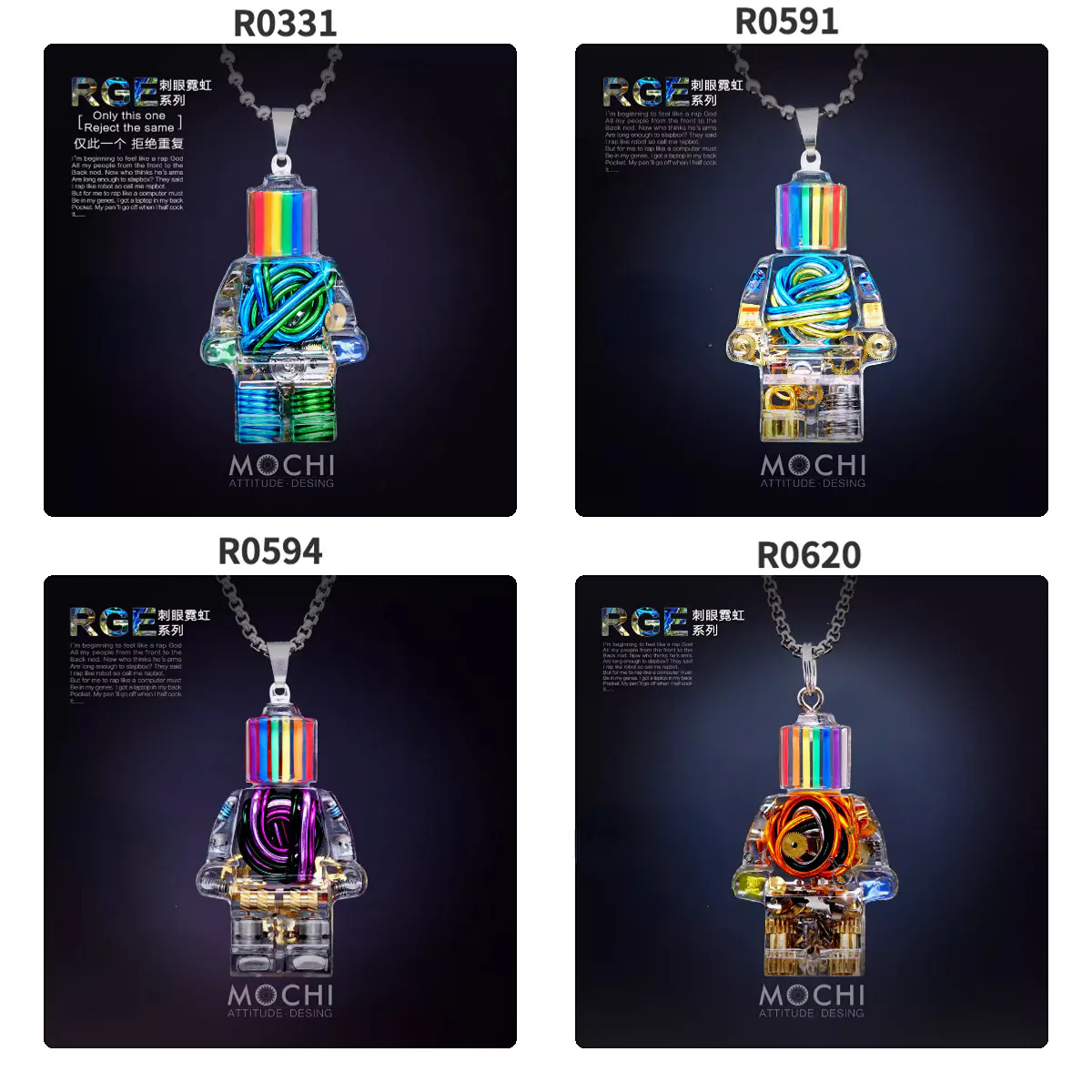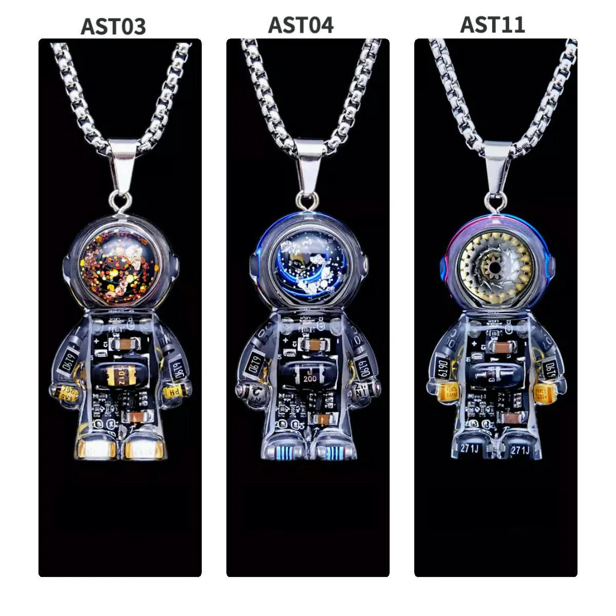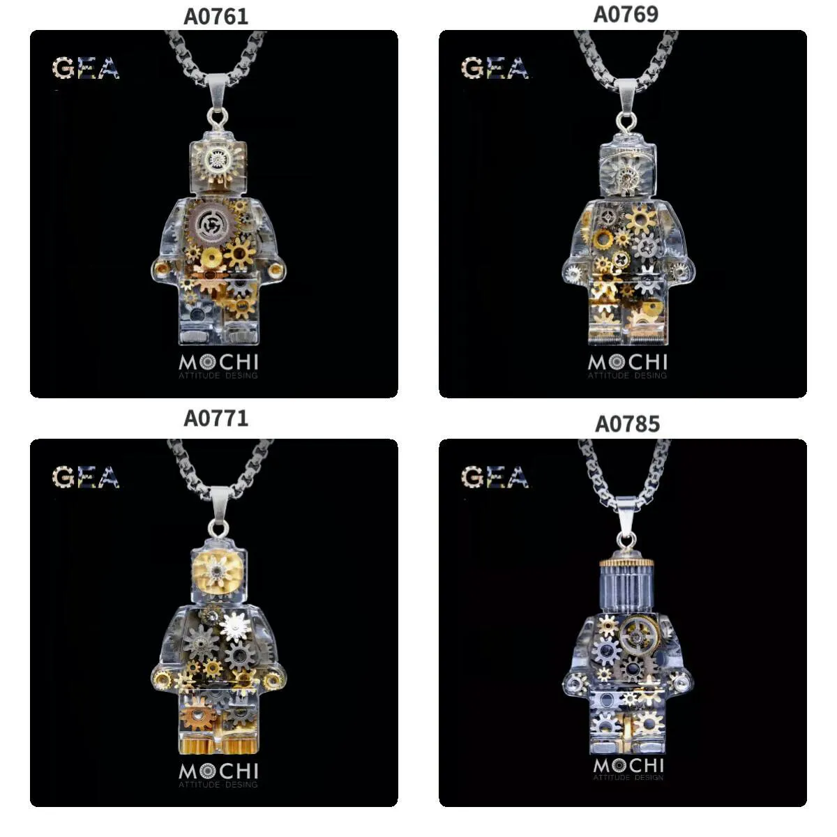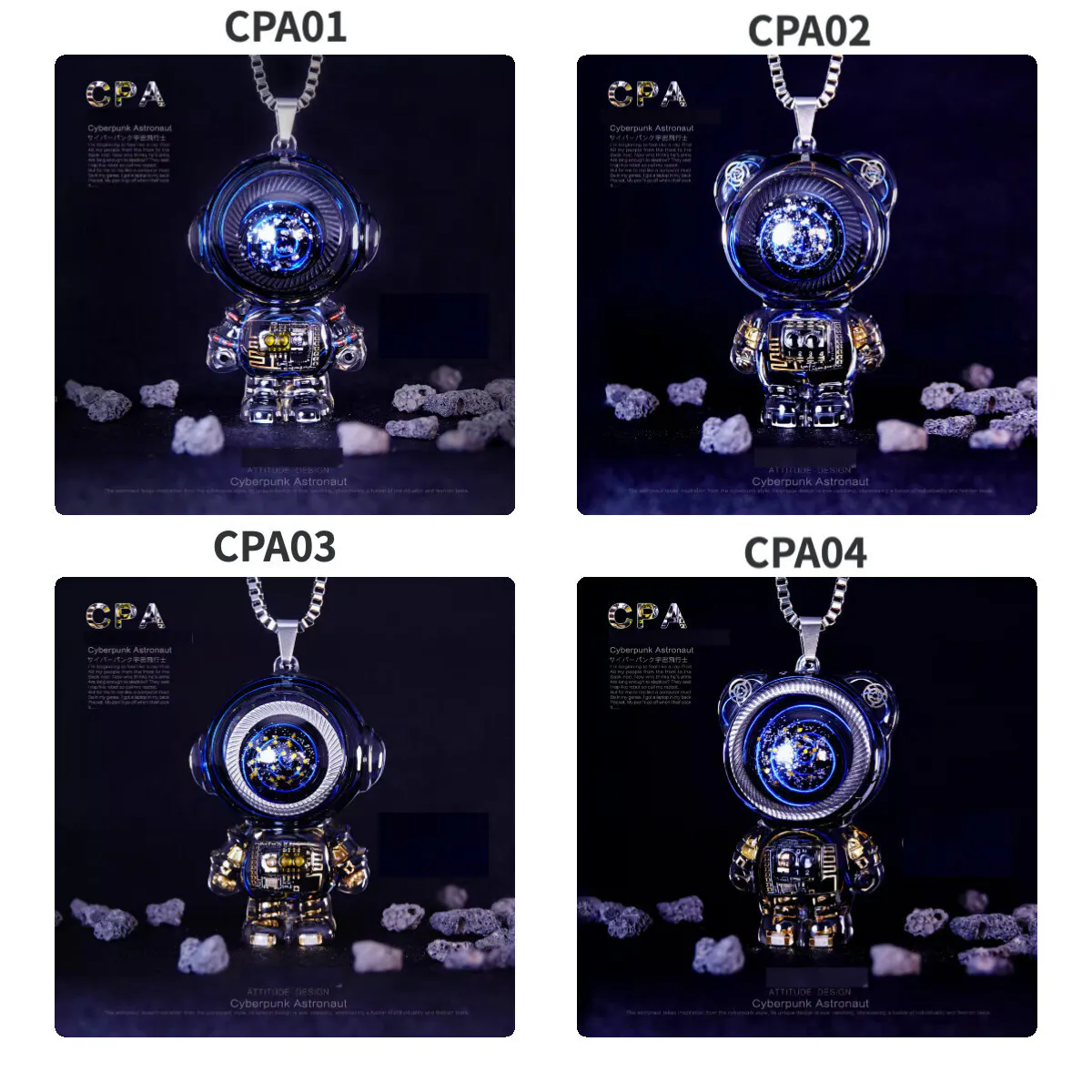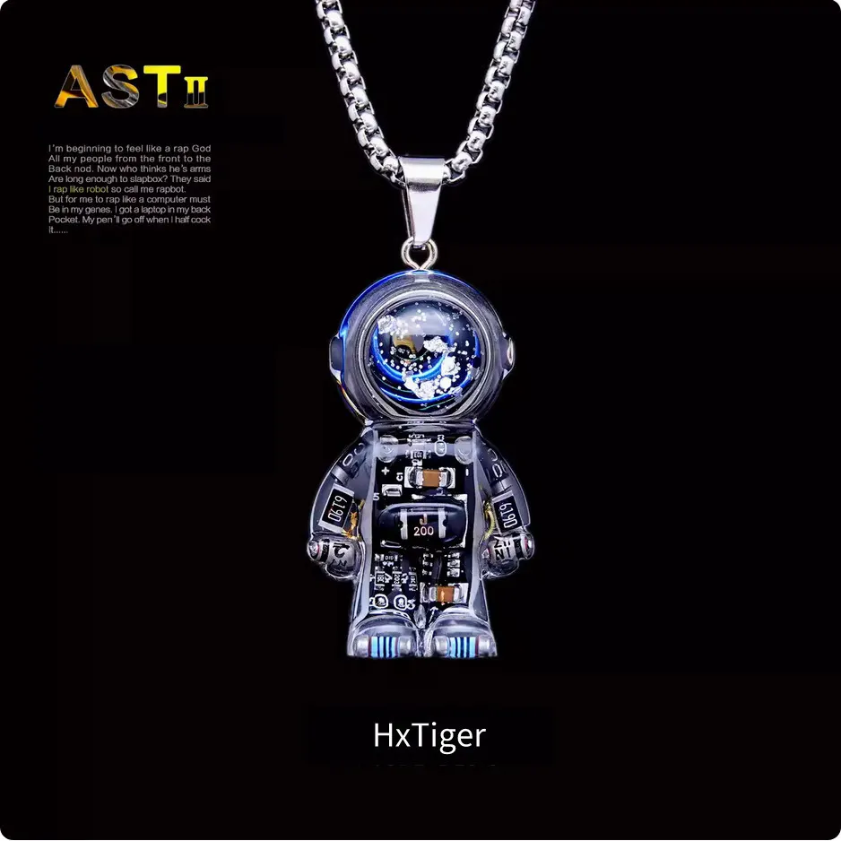 このペンダントは、SF映画やアニメからインスパイアされた未来的なデザインを採用しています。