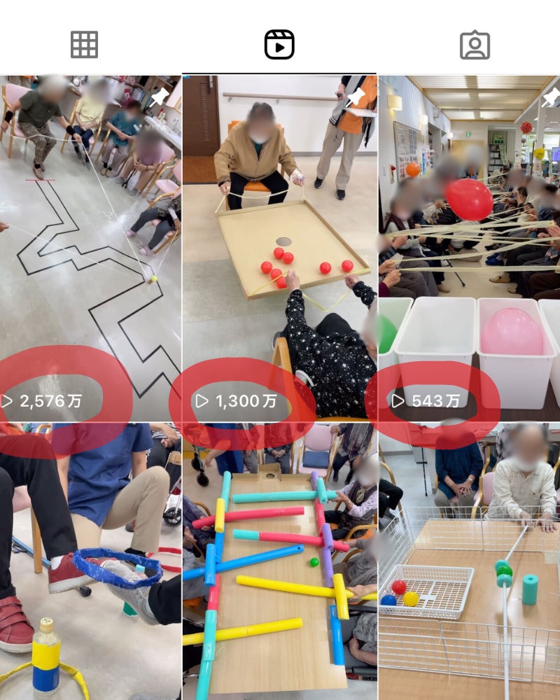 介護系の分野ではフォロワー数、日本1位のデイサービスです。動画を見た世界中の方々から「これは面白いゲーム」「見てて楽しい」「ぜひ真似したい」といったコメントを沢山頂いております。