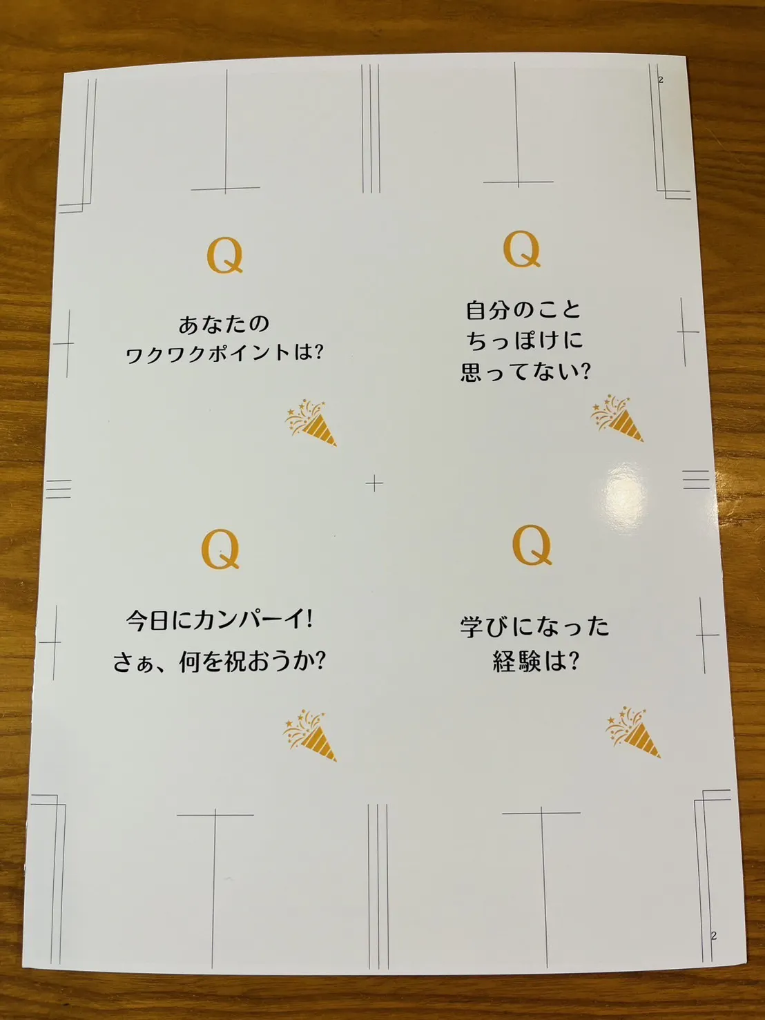 2 カードの裏面(人生の質を高める質問)を