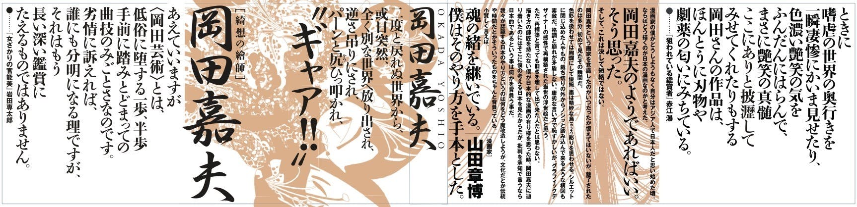描き方の師匠を持たない僕が日本的な漫画の有り様を思った時、岡田嘉夫に辿り着いたのにはそこに僕の考える日本を見たからだが、批判を承知で言うなら日本的であるという事は何かを背負う事だ。