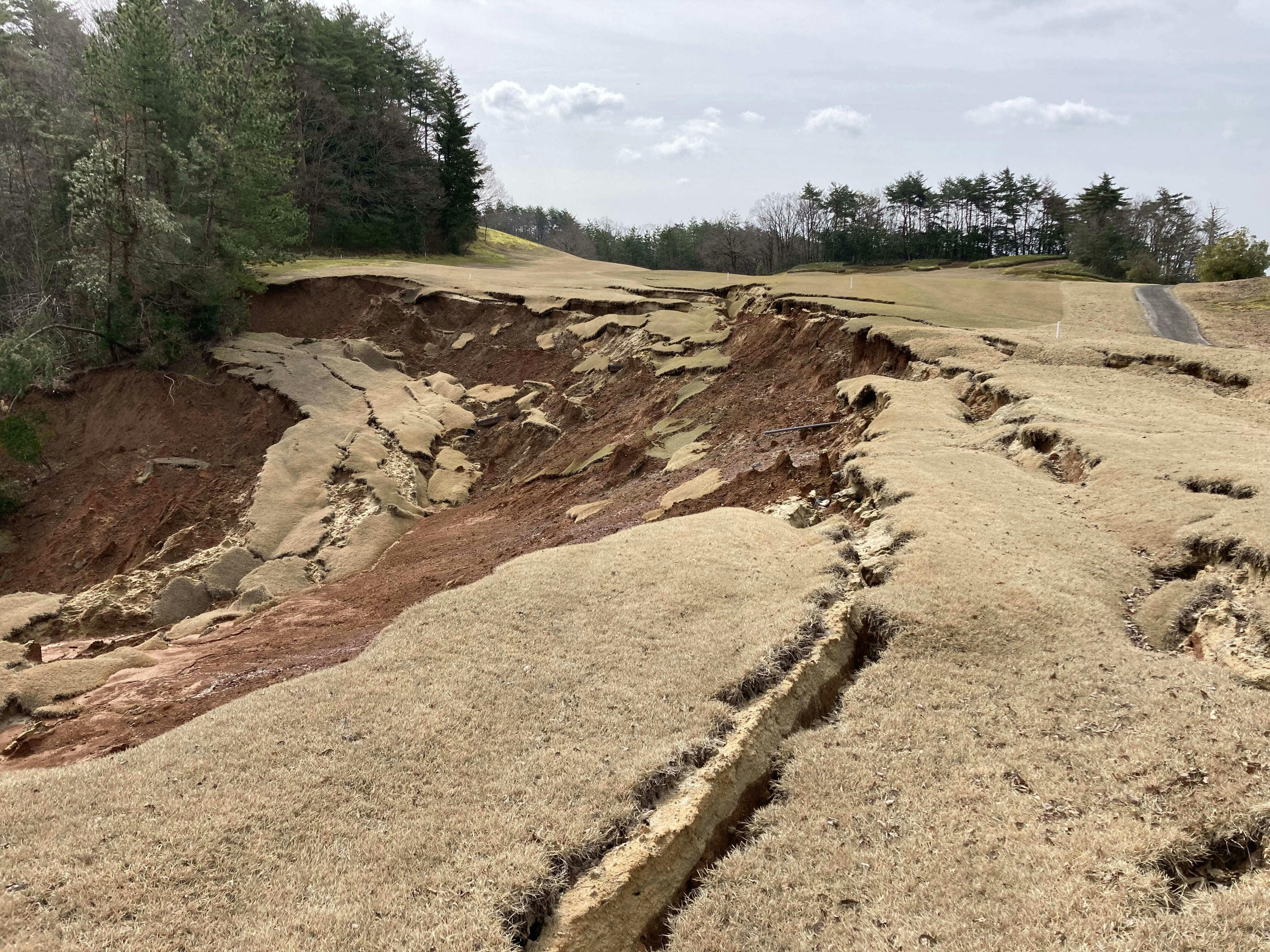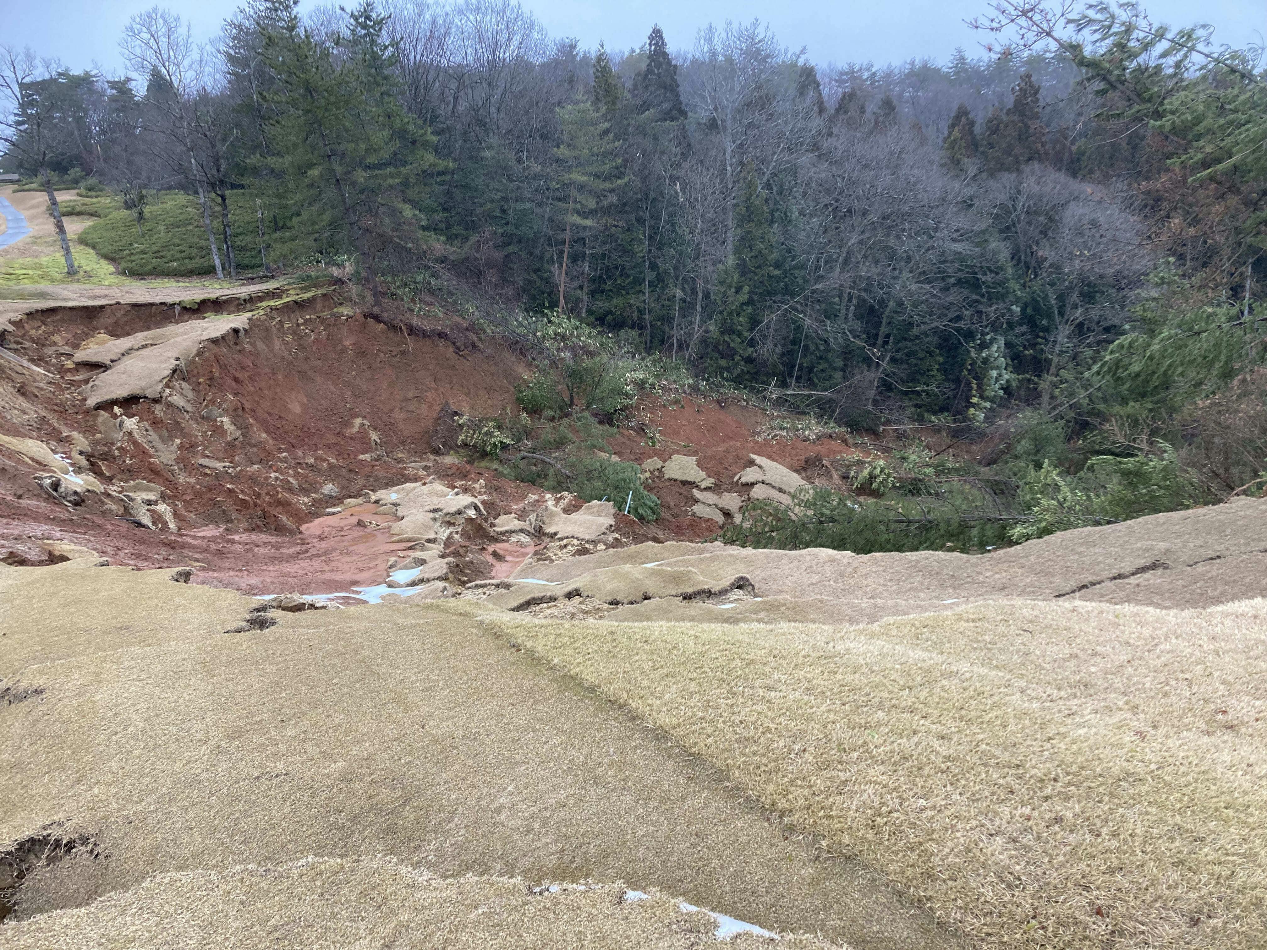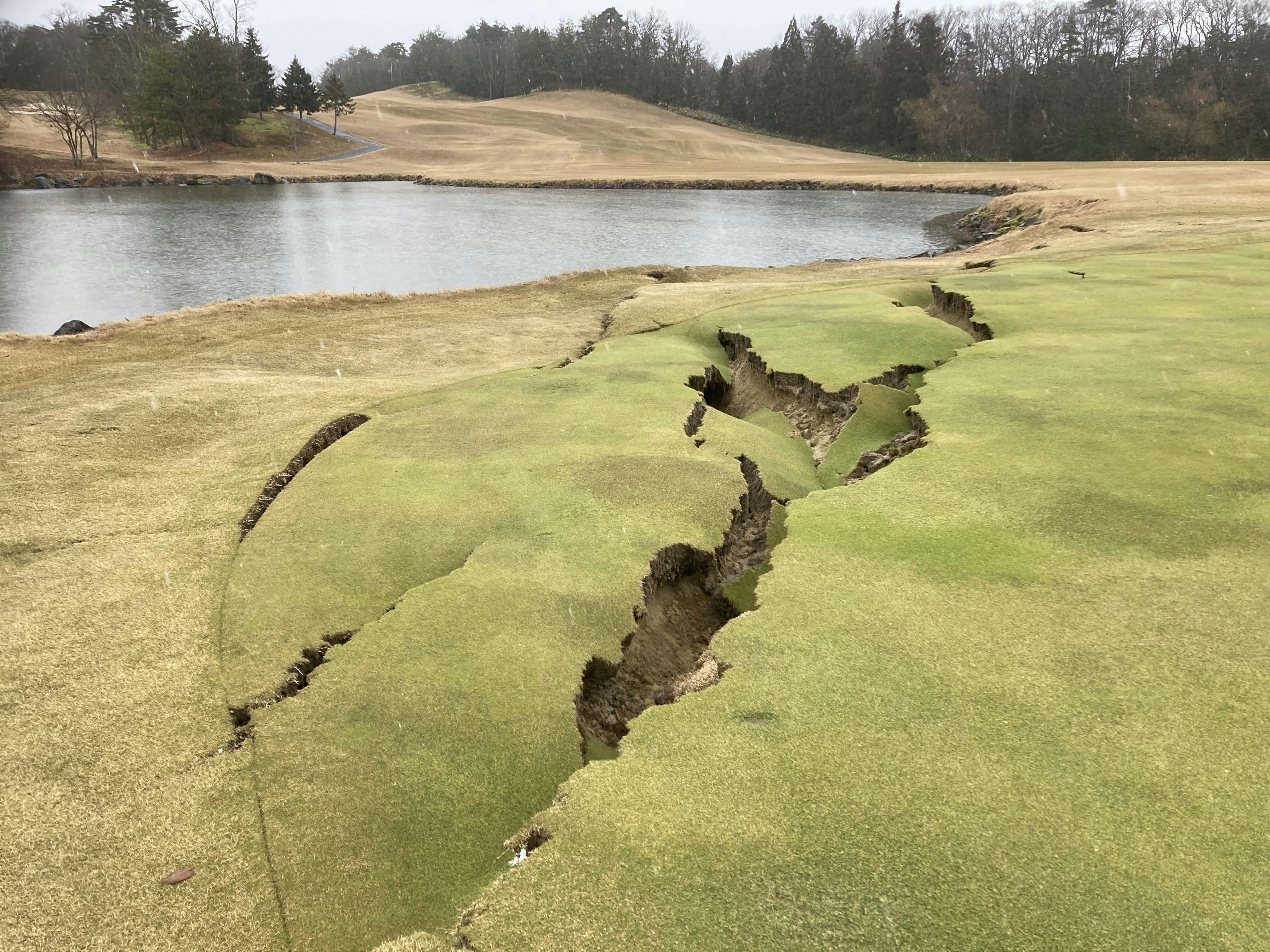 震災後、スタッフの安否確認と自身の避難生活を続ける中、ゴルフ場の被害状況を確認できたのは、発生から2週間後の1月14日のことでした。