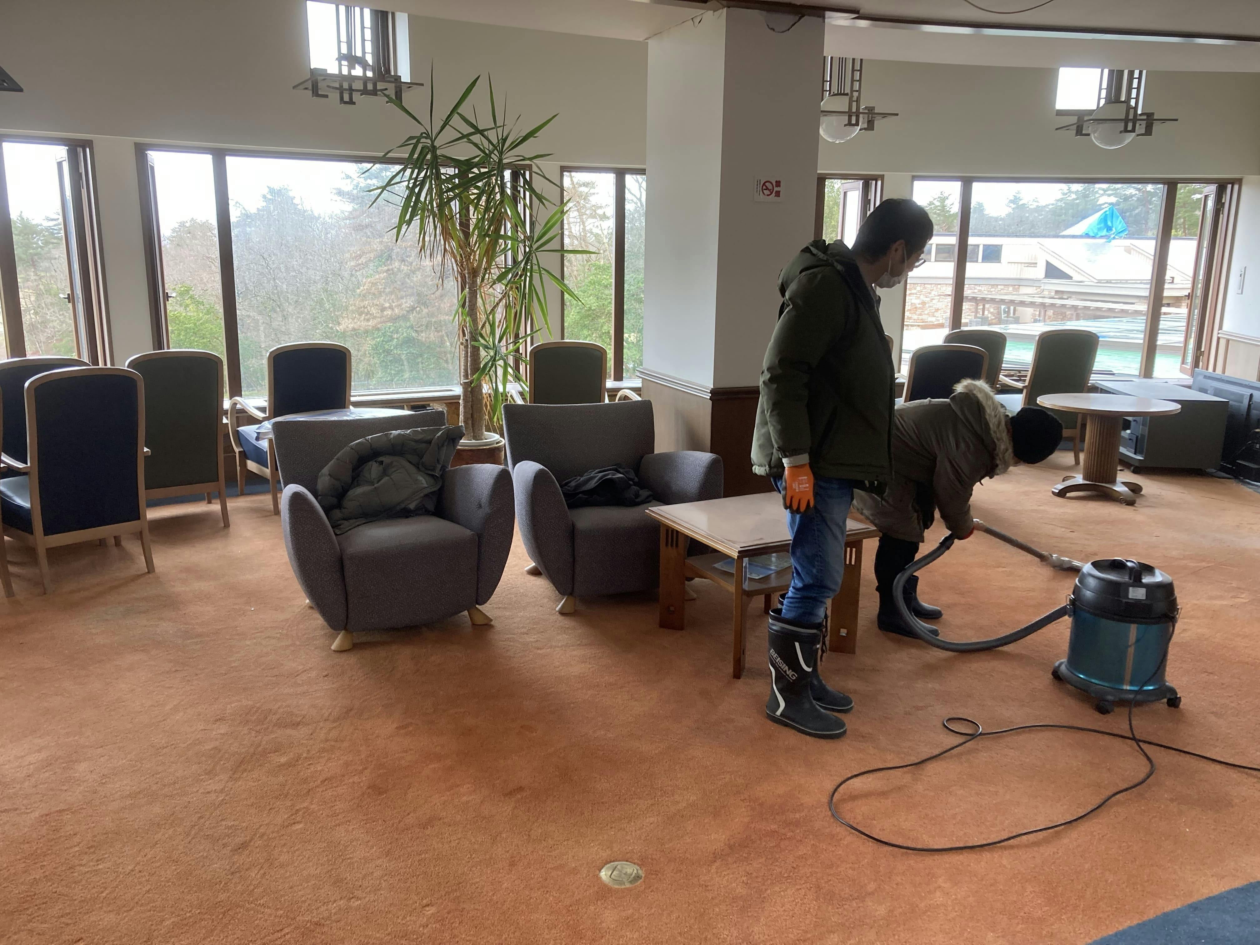 震災後数ヶ月は、インフラの復興優先、人手の確保困難などから、工事業者の目処が立たず、スタッフだけで瓦礫の撤去をする毎日でした。