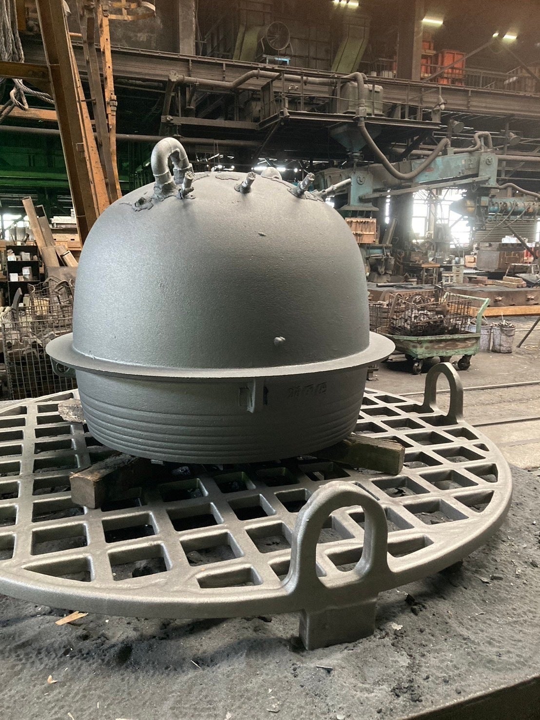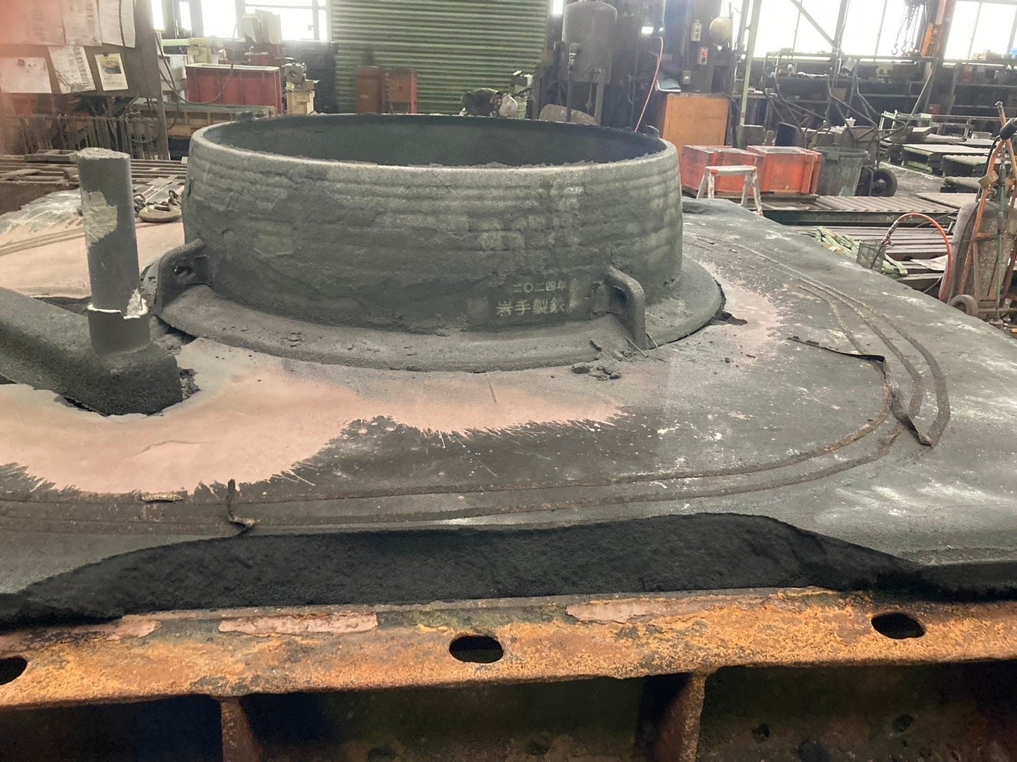 工場へ着くと、すでに上部は砂型が外されていました。