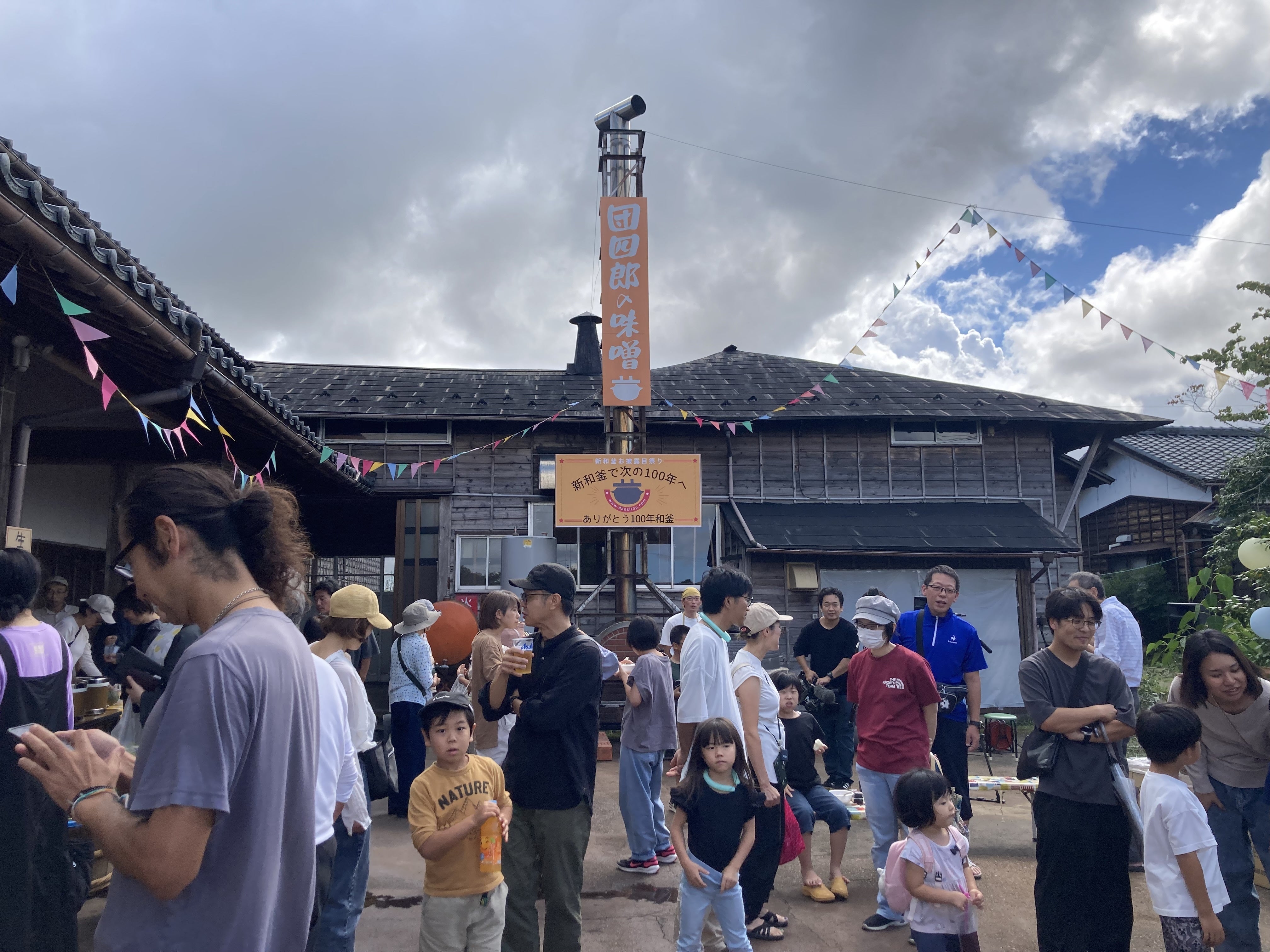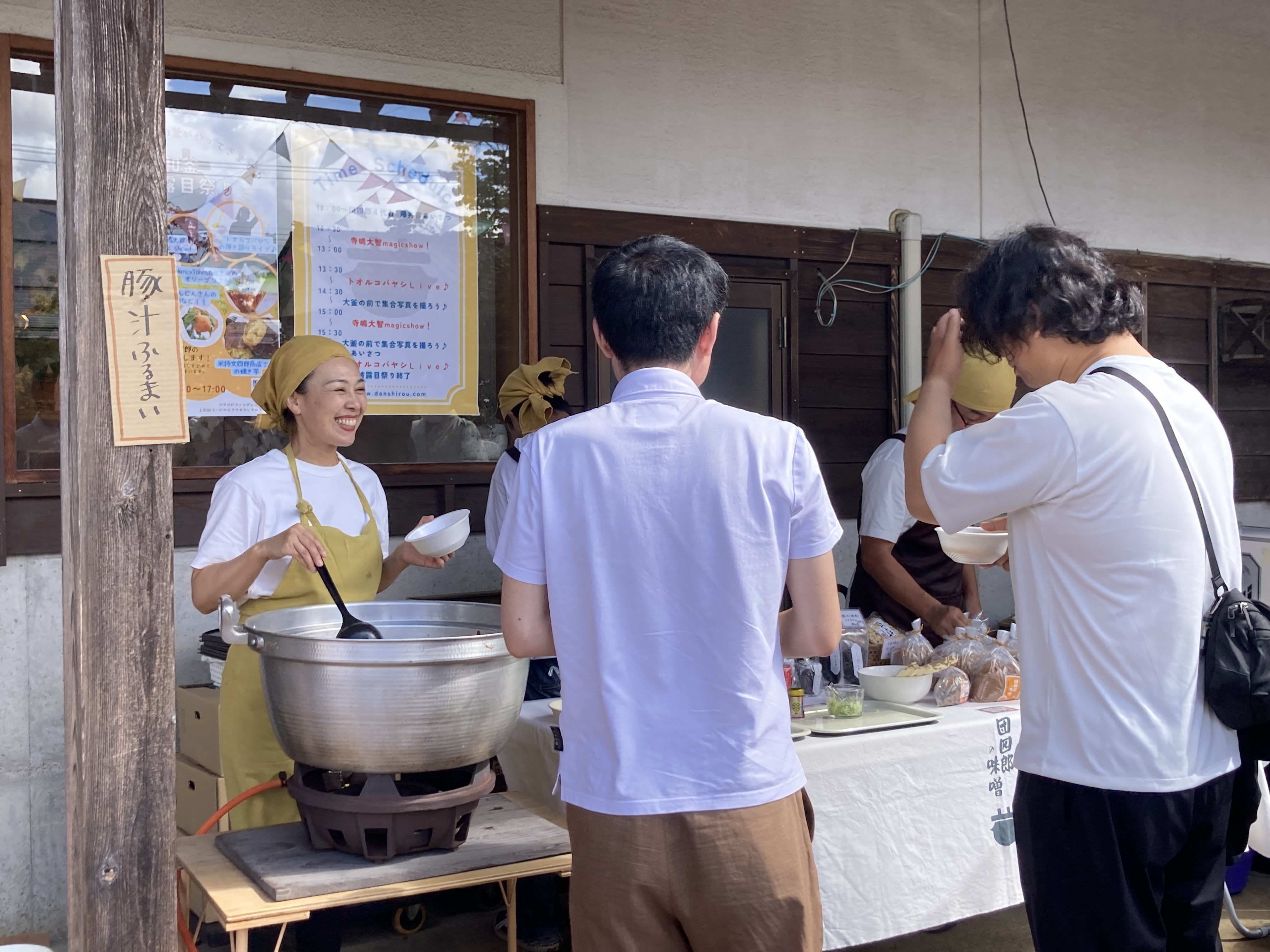 開催直後から、たくさんのお客様にお越しいただいて、新和釜と100年和釜を眺めてもらいながら、豚汁を召し上がっていただいております!
