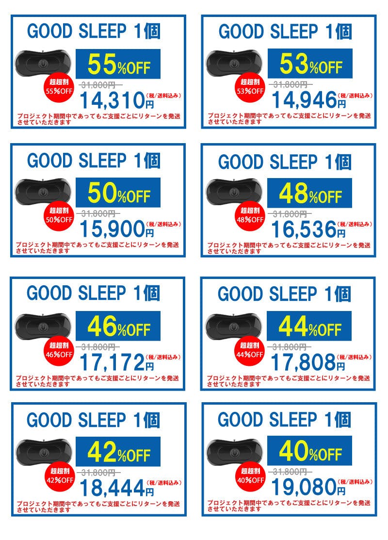「Good Sleep」のリターンにつきましては、プロジェクト終了後すぐに発送できるように、プロジェクト期間中にご支援数の状況確認をしながら迅速に進めるよう最善の努力を尽くします。