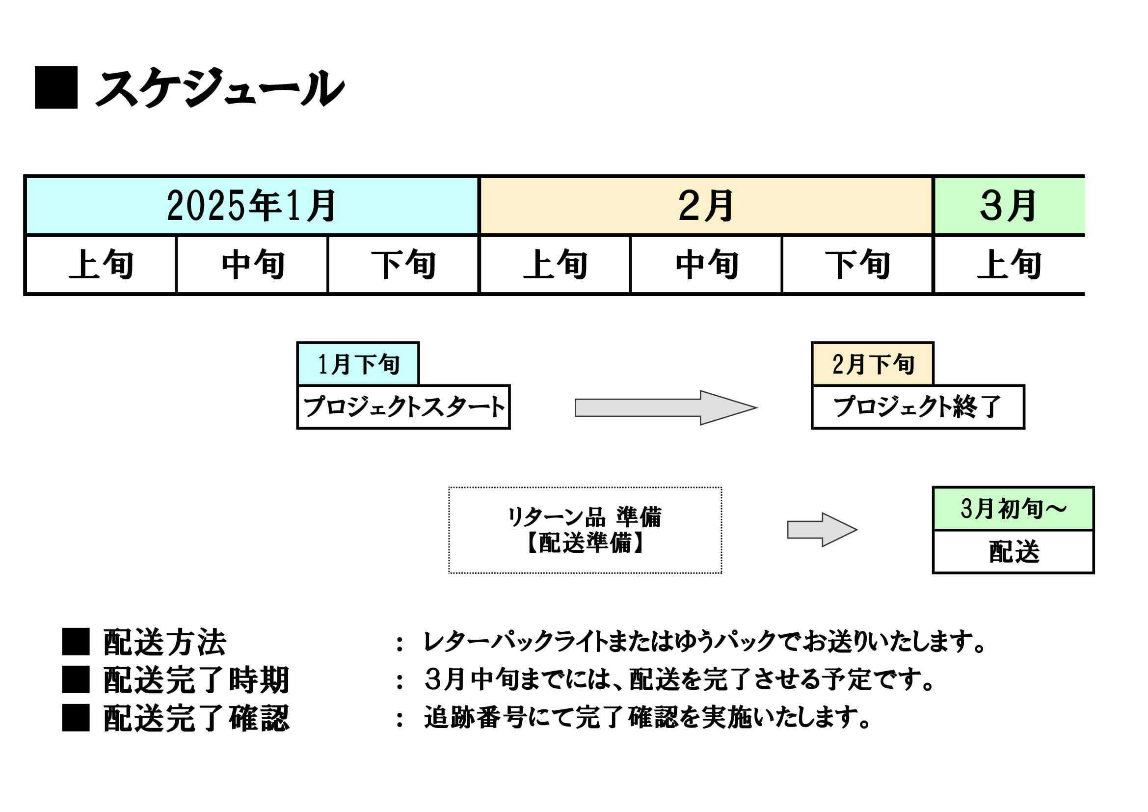・リターン品は、以下の手法にて配送いたします。購入パターンにより、