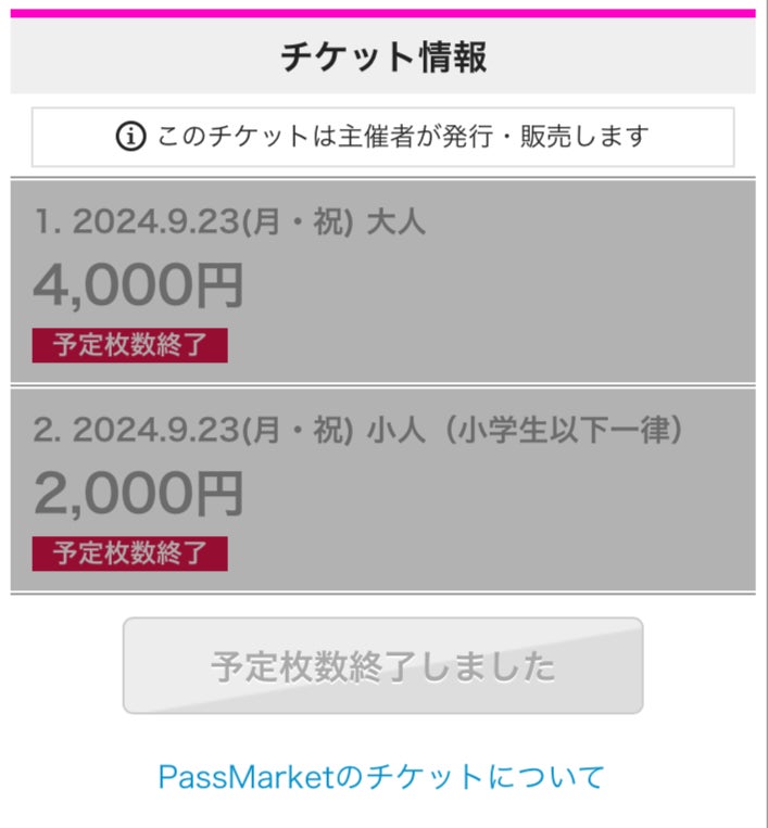 ツアーイベントのチケット完売しました!