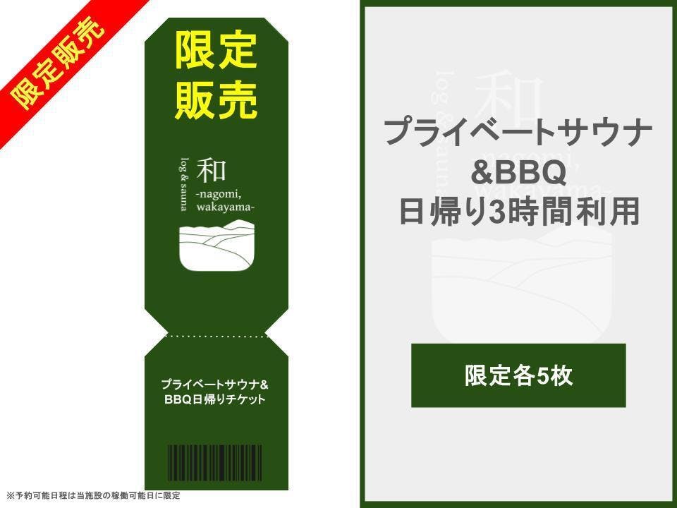 日帰りでプライベートサウナとバーベキューエリアを3時間ご利用いただけるプランです。