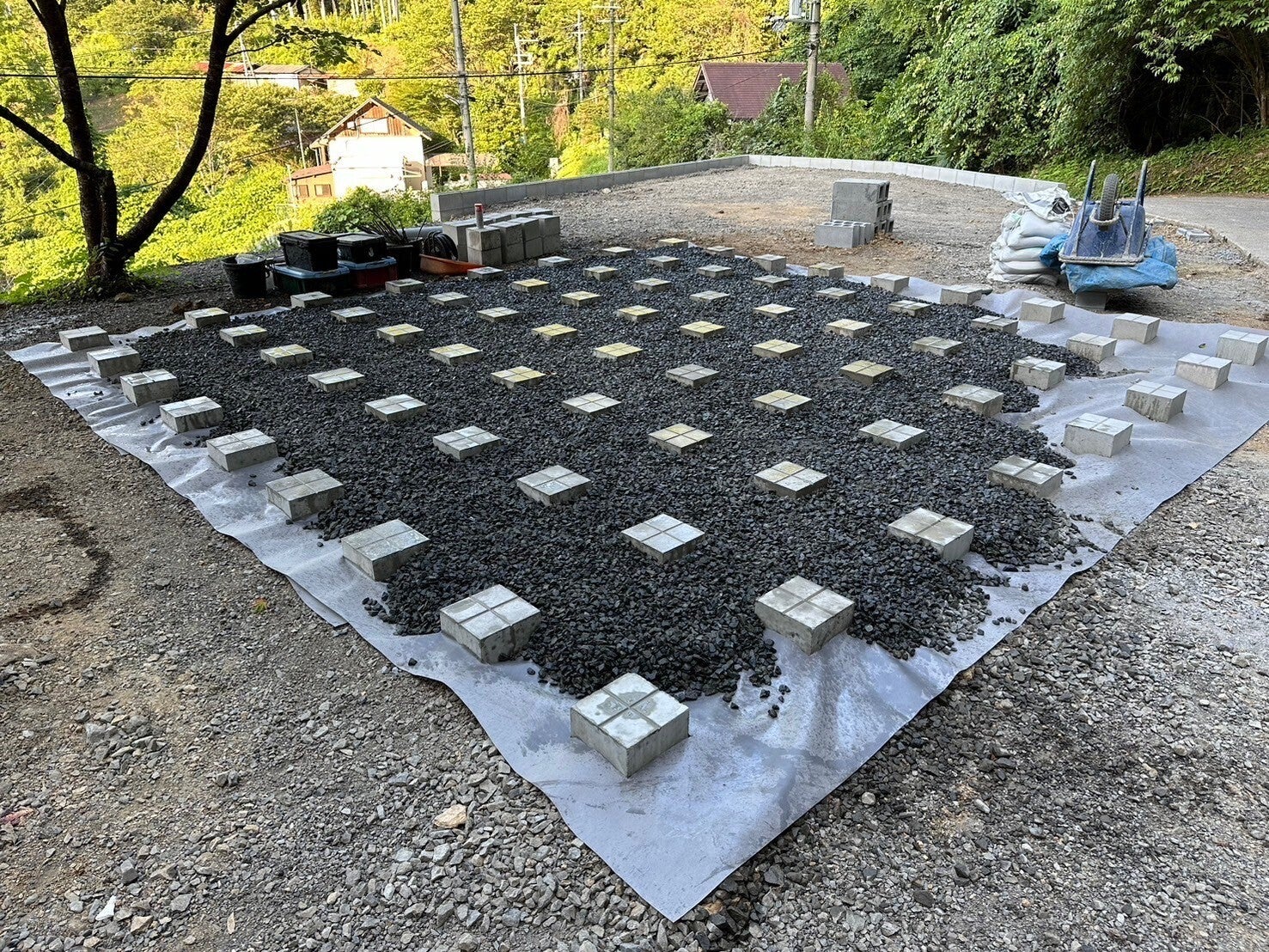前回の現地報告は荒れ果てた土地の伐採を行い、砂利を敷き詰めたところまでご報告させていただきました!