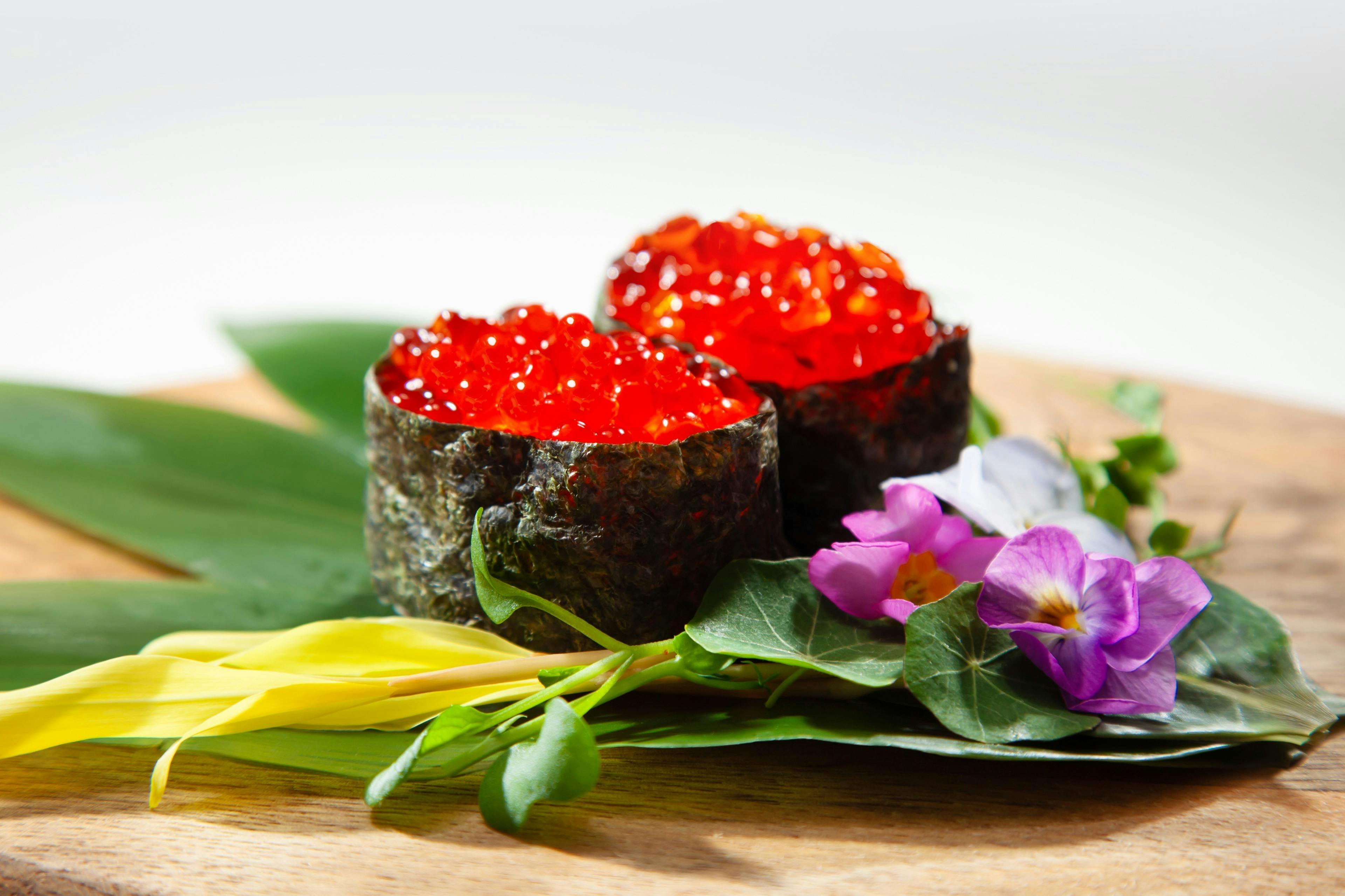 美味しそうなイクラ軍艦。日本が誇る食文化、『寿司(Sushi)』ですね。