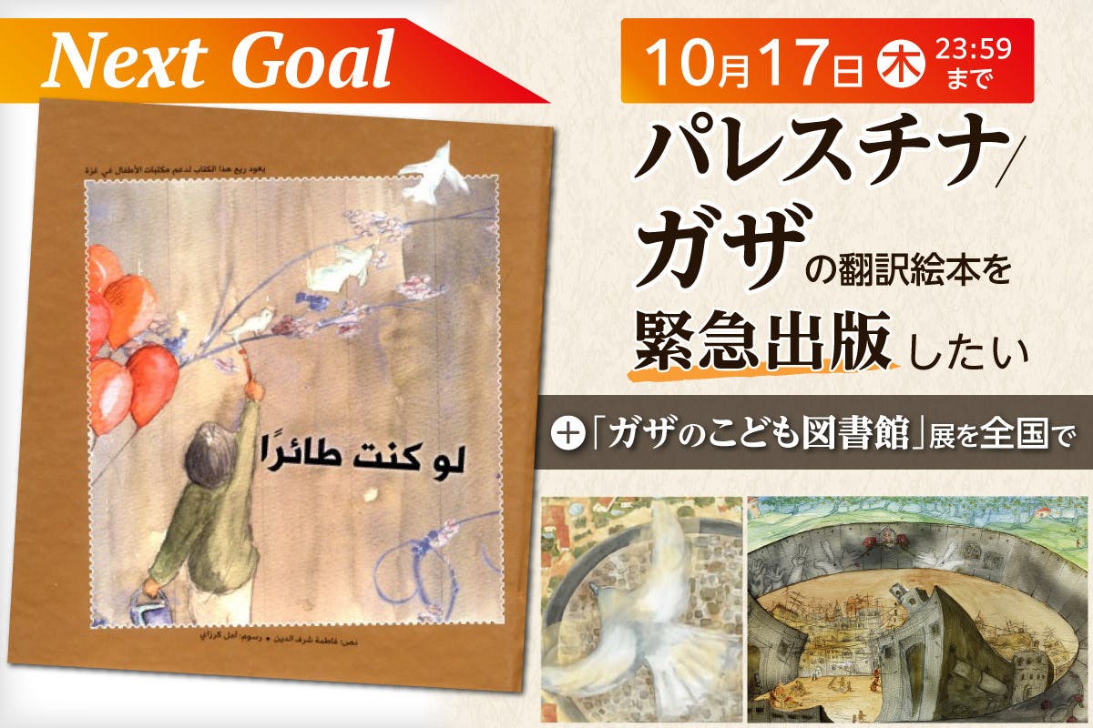 より多くの方々に絵本と「ガザの子ども図書館」展を届けるため、あと少しのご支援・拡散のご協力をお願い申し上げます。