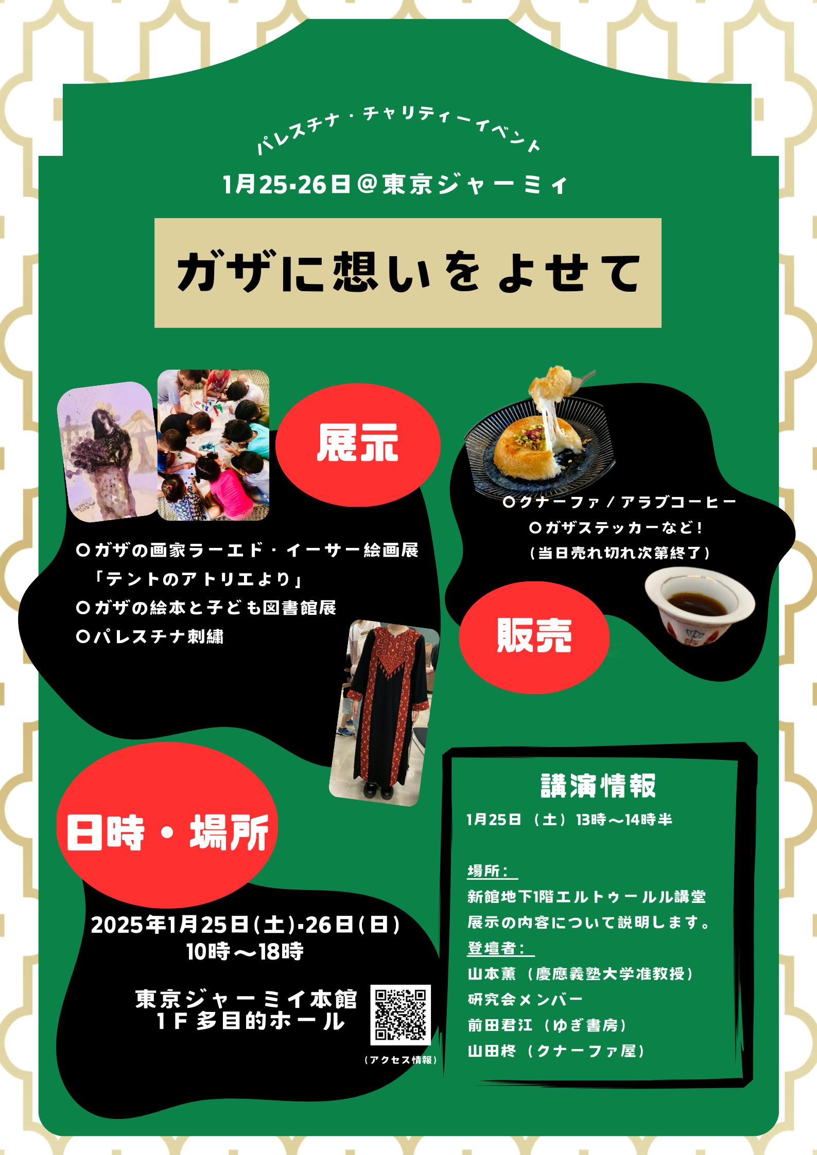 慶応大学SFC(湘南藤沢キャンパス)でアラブ・中東・イスラームの社会と文化を学ぶ学生さんたちのゼミ「アラブ文化研究会」主催のチャリティ・イベント(1/25土-1/26日 於:東京ジャーミィ)にて、最初の展示の機会をいただけることになりました。同イベントでは、