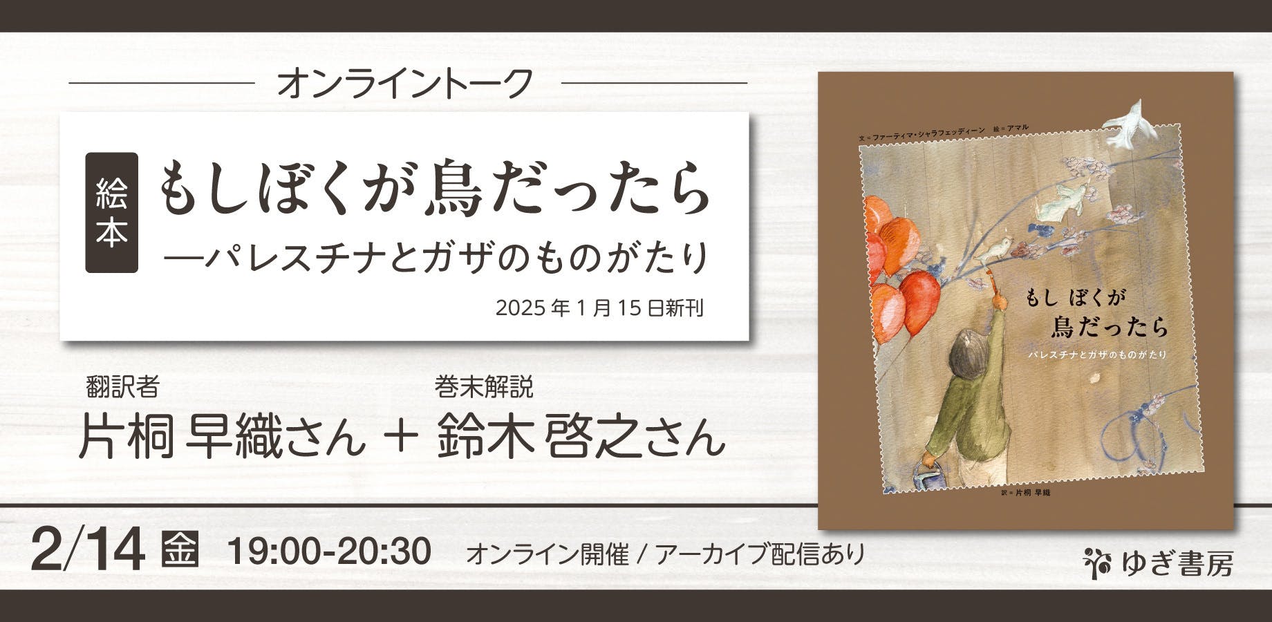 オンライントーク 絵本『もしぼくが鳥だったら――パレスチナとガザのものがたり』(2025年1月25日刊行)