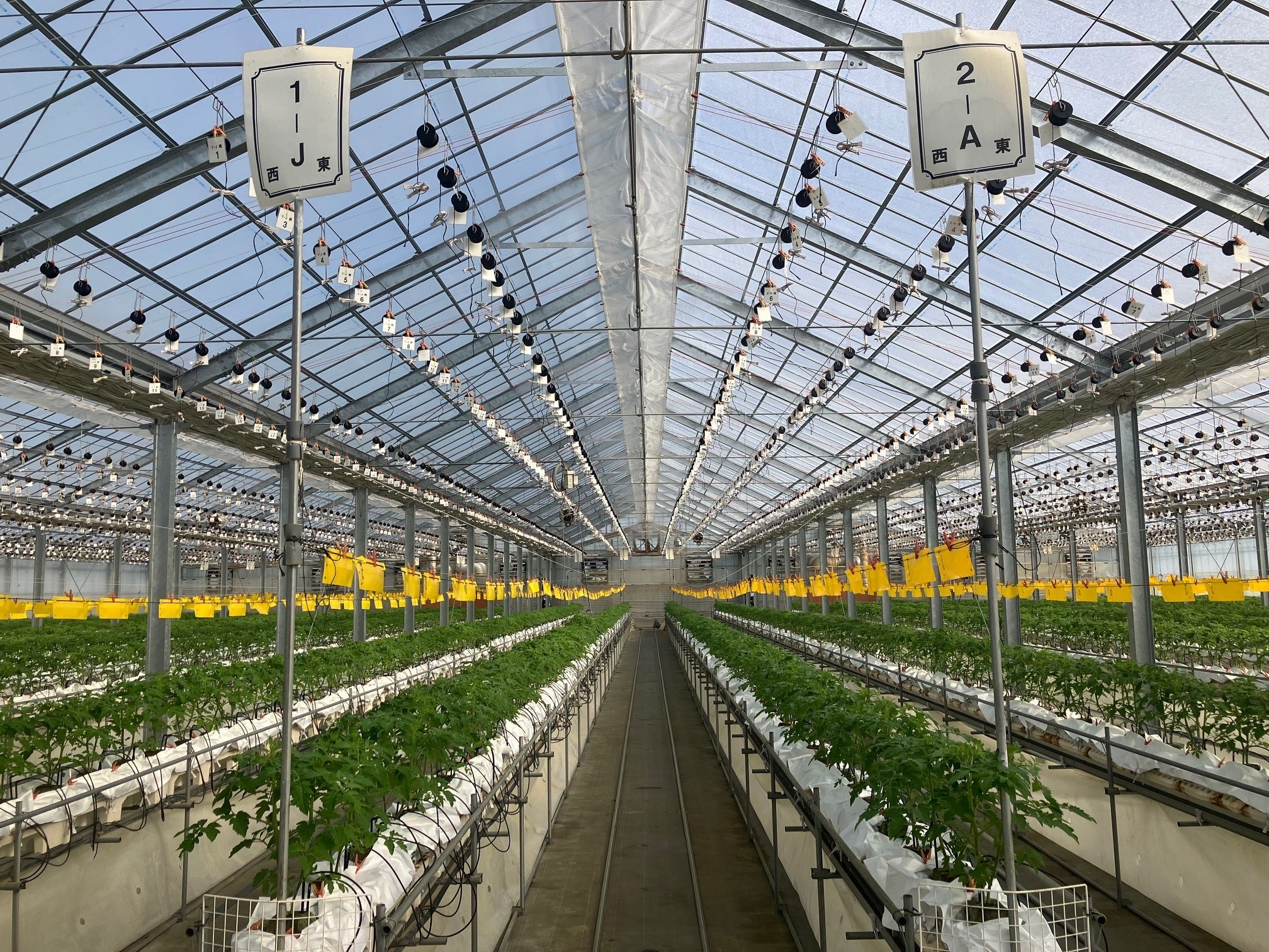 6月10日、リターン品になるミニトマト苗4,440株を定植いたしました。根が活着した1週間後の写真です。一般的に関東以西の平野部で夏越し栽培は推奨されていませんが、デンソー製農業ハウスの空調技術を使って、美味しいミニトマトが提供できるように頑張ります!