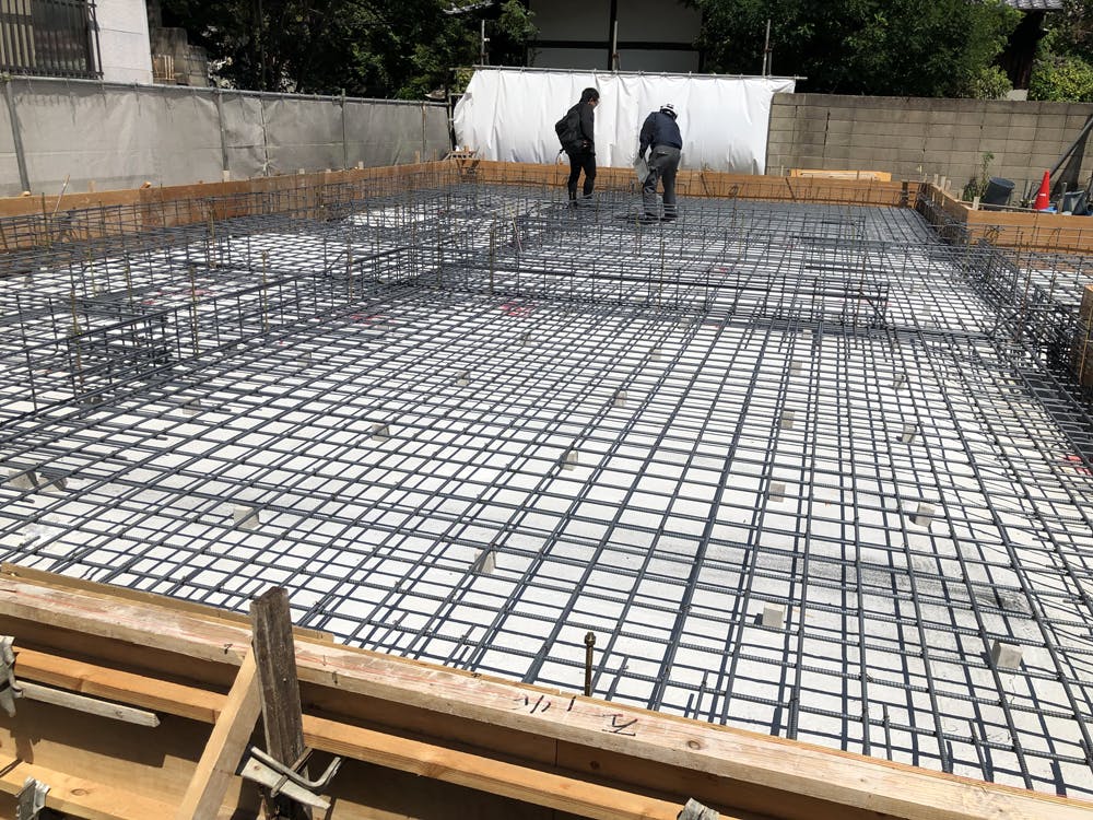 現地にて建築士により配筋の確認を行いました。