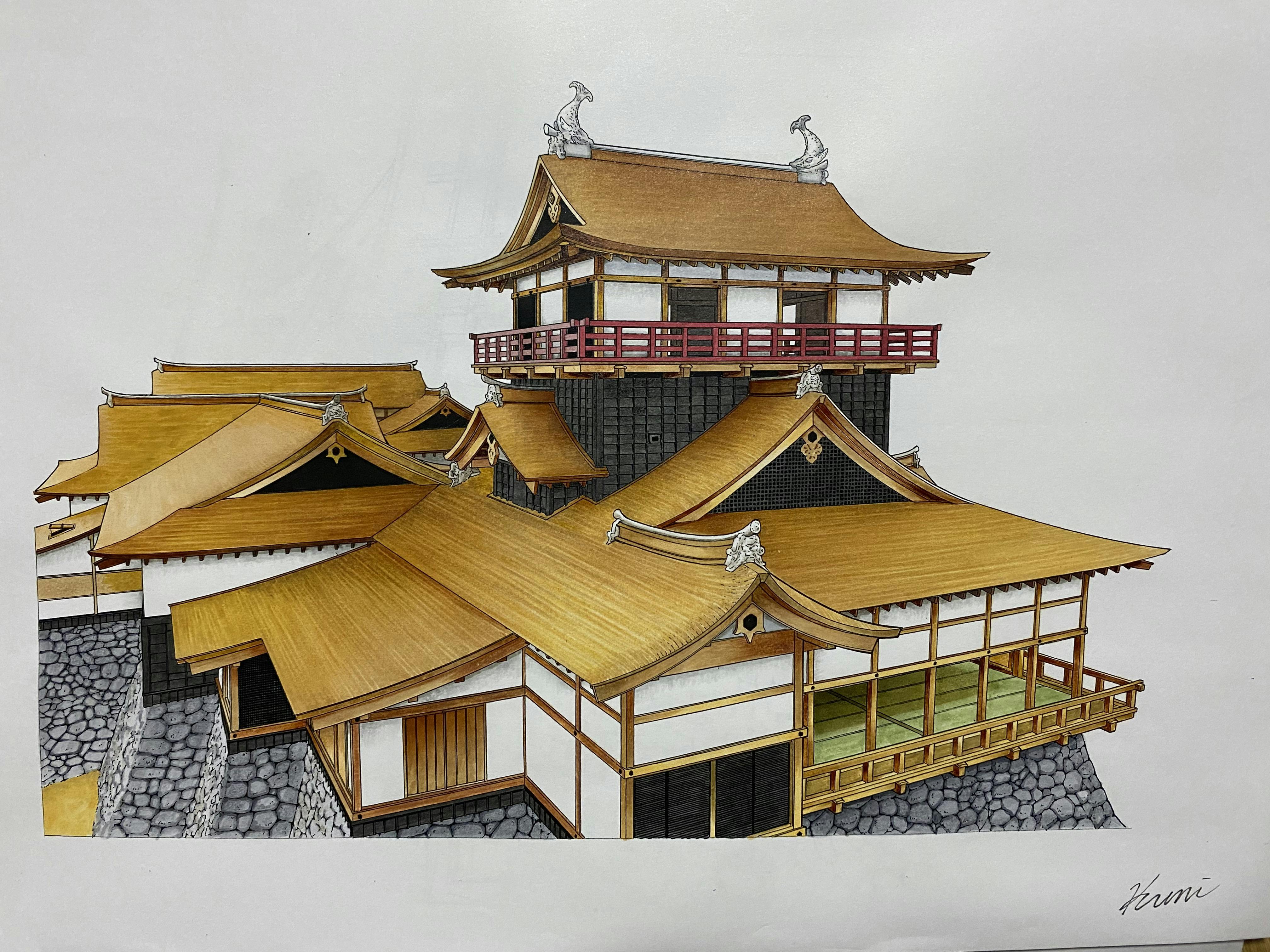 リターン品にある「御城印」に使用する予定の高山城の絵が完成しました。他にも使用するかもしれません。絵を描いたのは今回のマンガ金森長近の作画を担当している漫画家中井邦彦氏です。やはり基本がしっかりしている漫画家はすべてに秀でます。