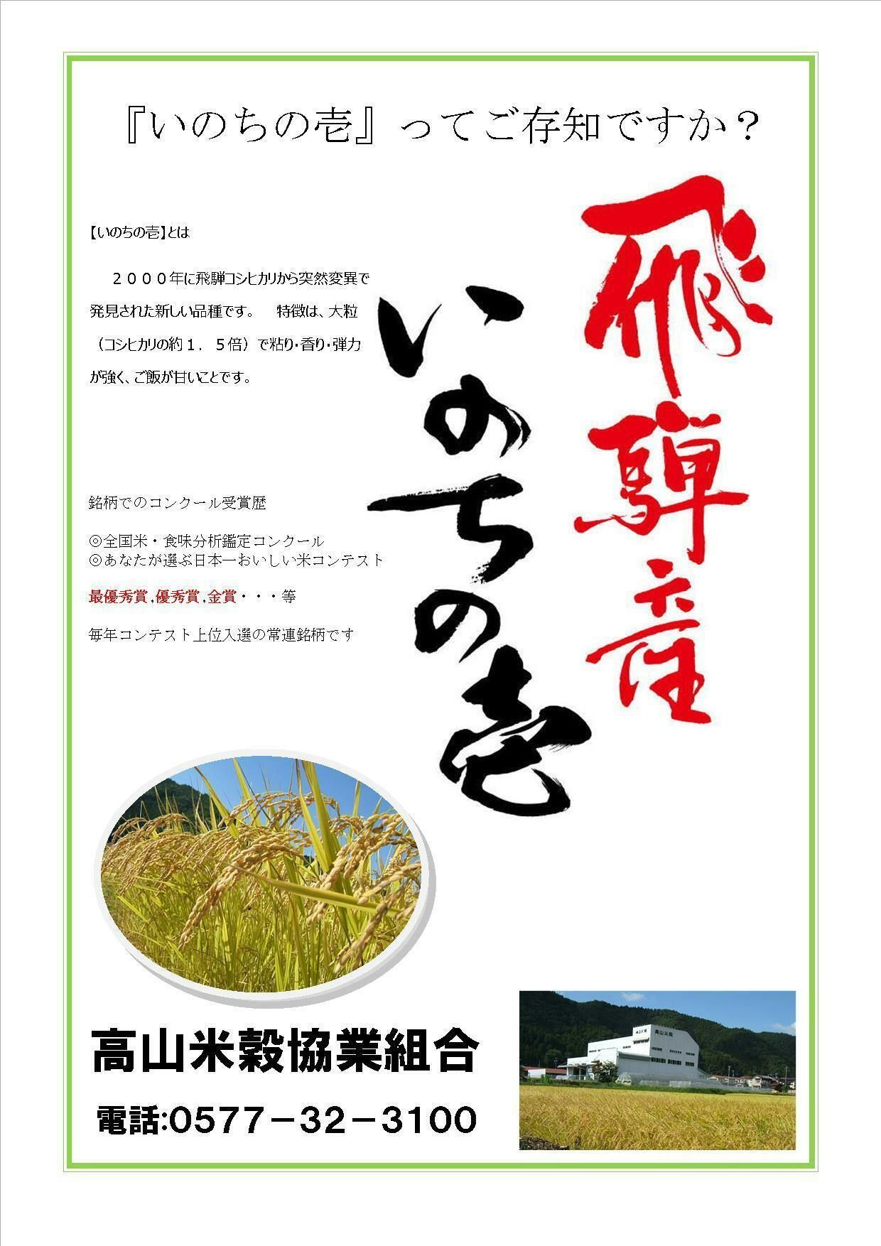 「いのちの壱」という品種は知る人ぞ知るブランド米です。ブランド米と言っても各都道府県で品種改良を常に行っていますので、近年続々と発表販売されています。北海道の「ゆめぴりか」とか、山形県の「つや姫」とかは生産量も多くかなり有名です。基本的には、食味が良く積極的に売り出された米=ブランド米だと思います。昭和31年に開発された「コシヒカリ」は現在までトップを守りつ図けているキングofブランド米です。これは美味しいお米ですよ!とアピールをして売り出せばブランド米と名乗れますので全国に溢れています。そんな中、「いのちの壱」の希少性が高い真のブランド米と言えます。